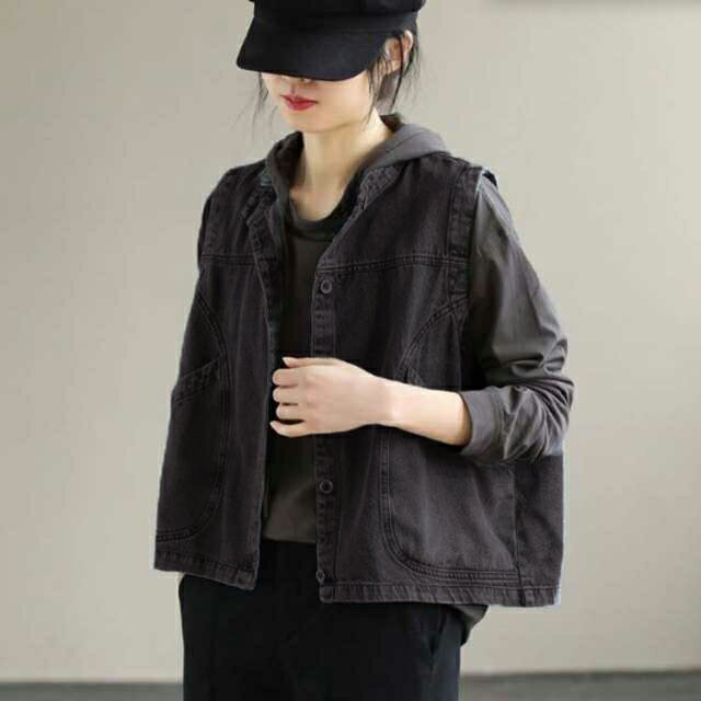 デニムベスト デニムジャケット レディース 前開き おしゃれ カジュアル ショート ブラック アメカジ ノースリーブ コンパクト レイヤード ベスト トップス 重ね着 カジュアルジャケット ブルー ゆったり 体型カバー ライトアウター 春アウター アウトドア