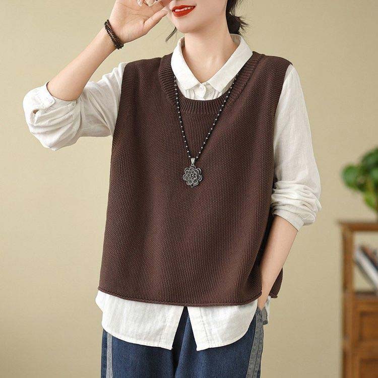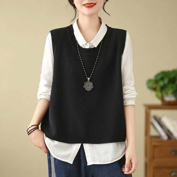 春夏 サマー 春秋ベスト ベスト ニット おしゃれ プルオーバー 薄手 ジレ ナチュラル トップス 着回し ベスト シンプル 体型カバー ノースリーブ ニット ゆったり カジュアル レディース レイヤード 重ね着 定番 クールネック 20代 30代 40代 50代 黒