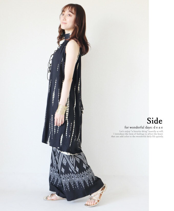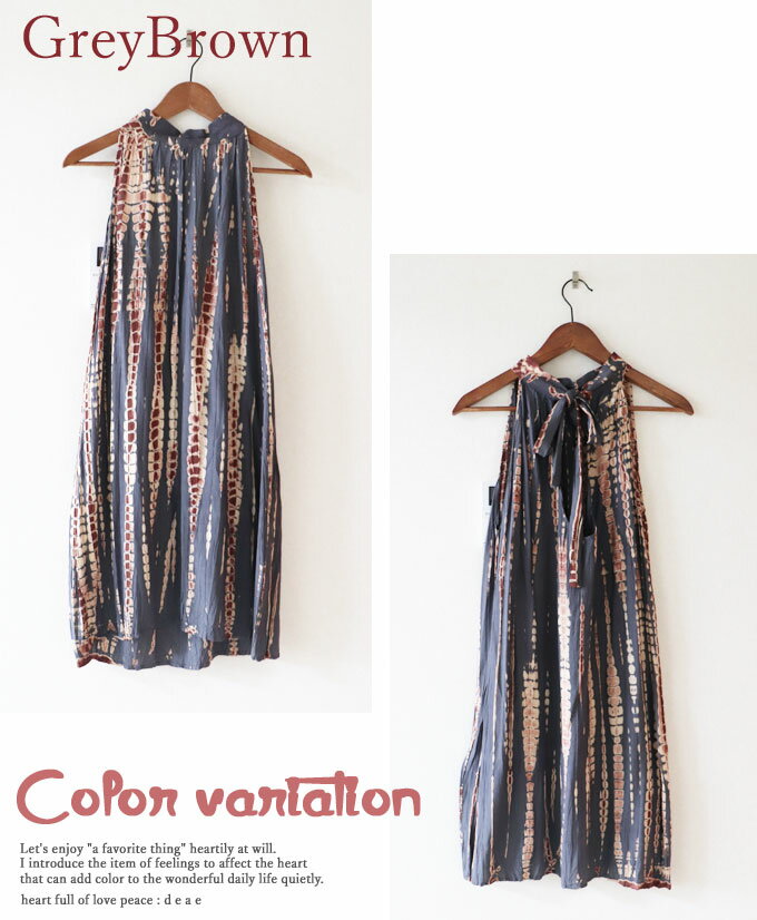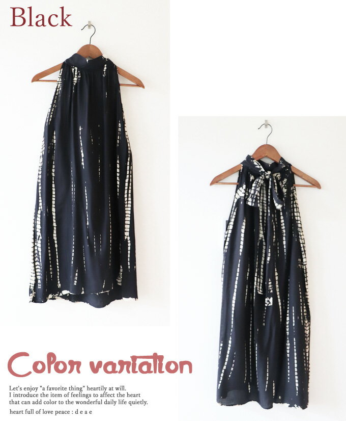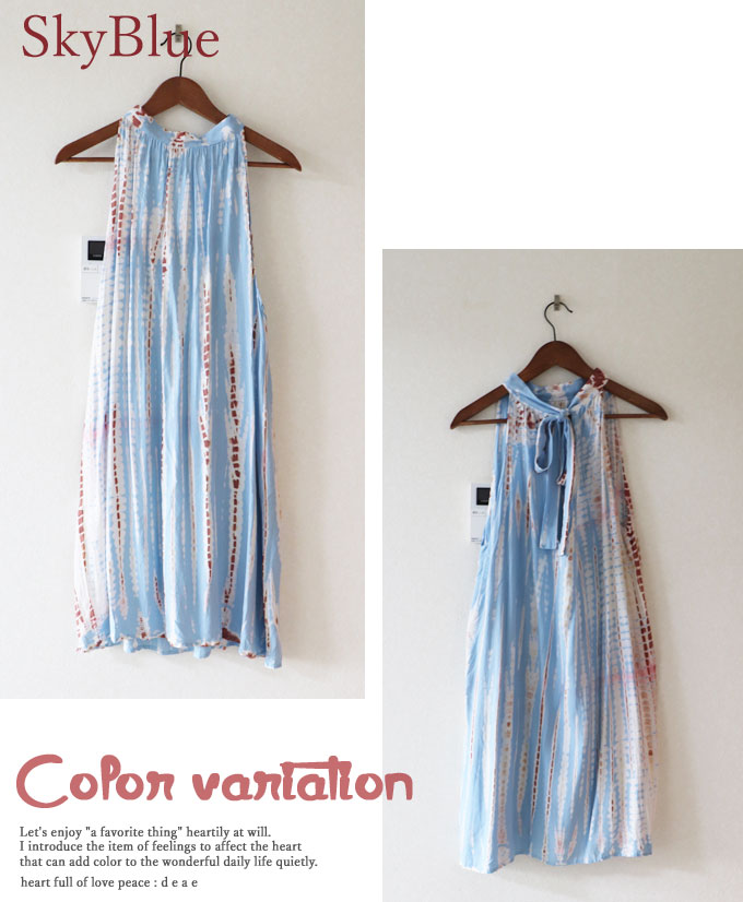 【7/28 再入荷】トップス ミドル丈 ノースリーブ タイダイ染め エスニック アジアン オリエンタル チュニック レディース ファッション 春 夏 秋 カジュアル 後ろリボン フレア Aライン 「涼やかなタイダイ染めのふんわりフレアなチュニックトップス」