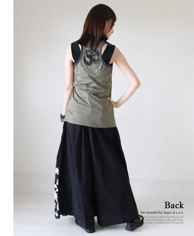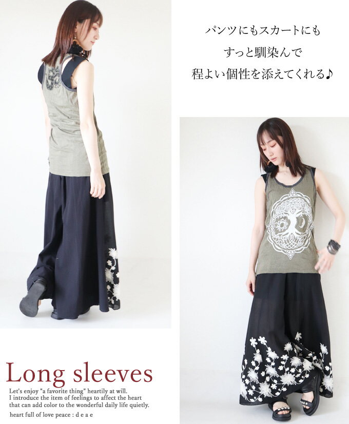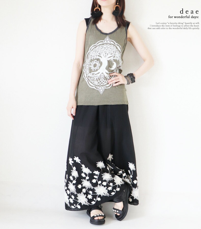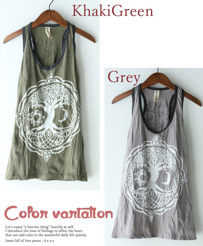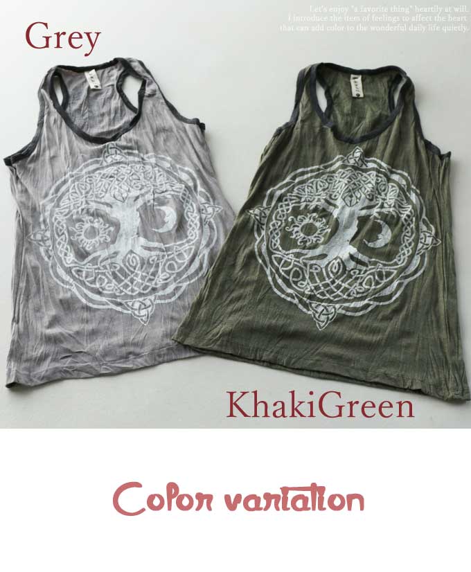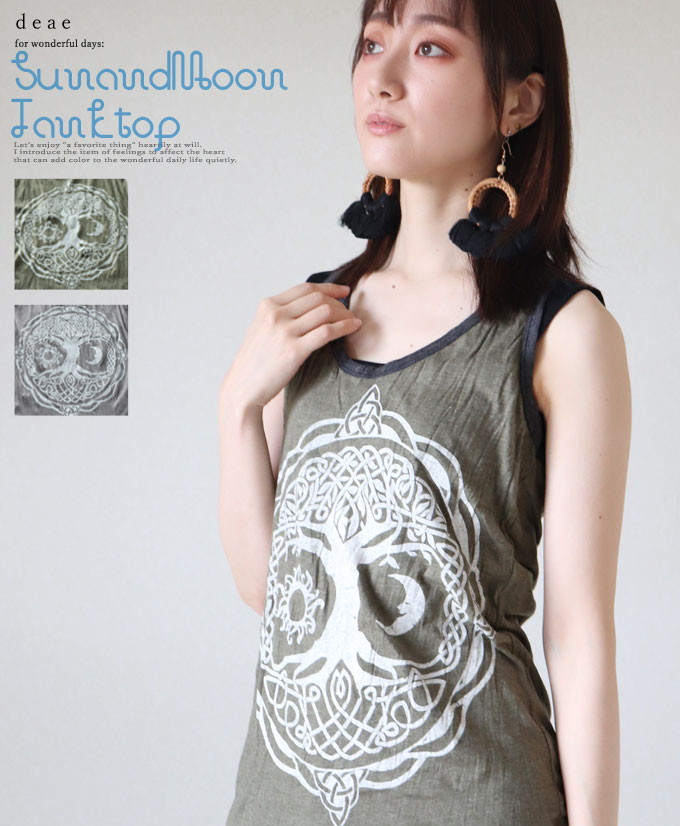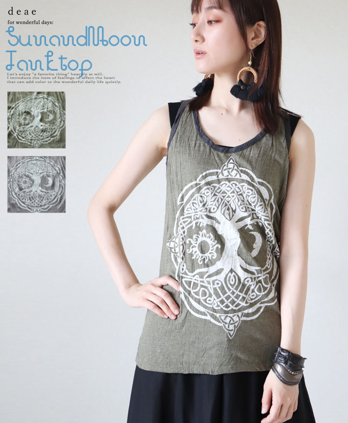 トップス タンクトップ ノースリーブ オリエンタル エスニック アジアン レディース ファッション 大人カジュアル 太陽 月「重ね着インナーにも使える 大人ナチュラルな雰囲気を楽しむトップス」