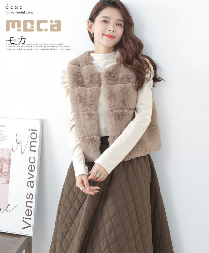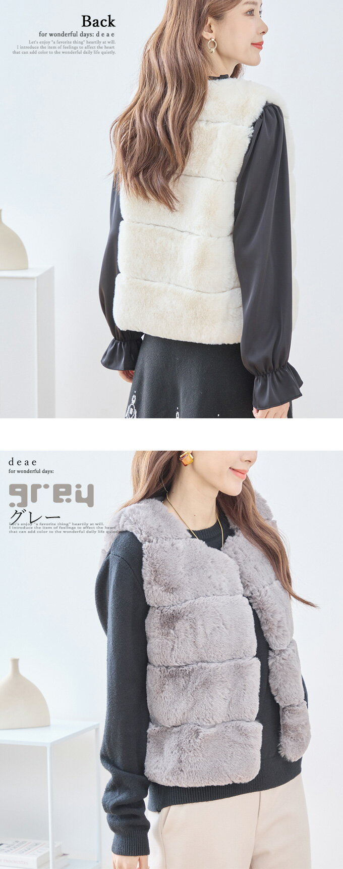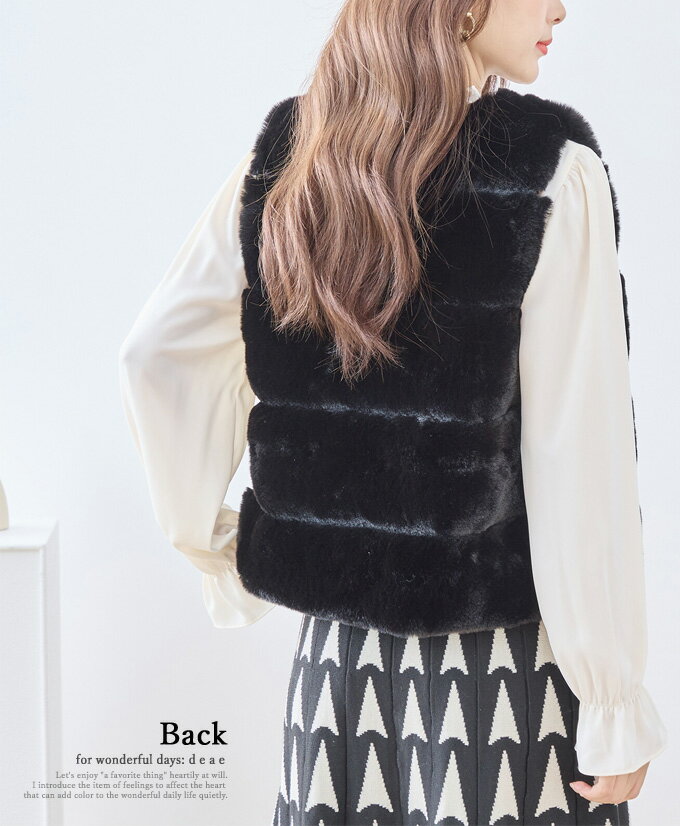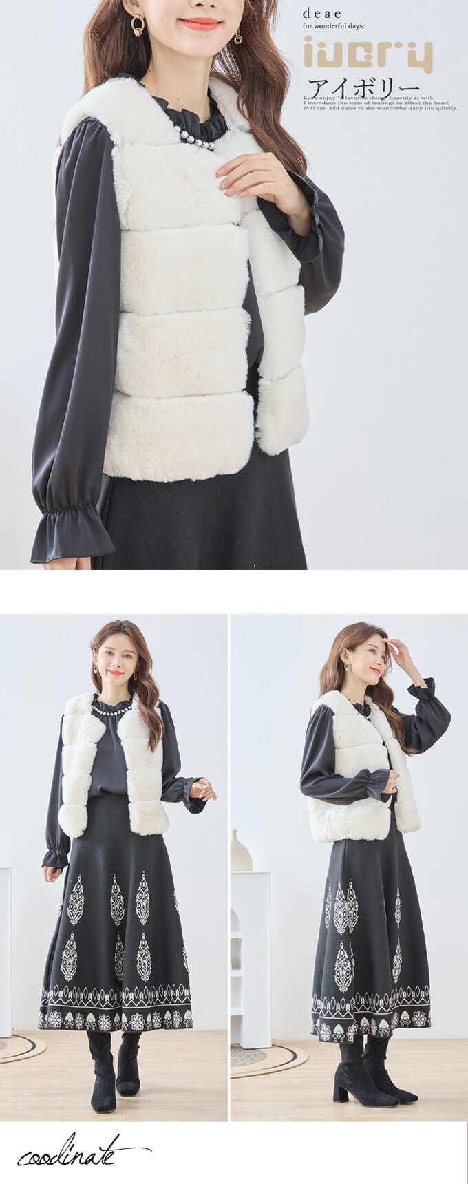 エコファーベスト ふわふわ 可愛い お洒落 ミディアム丈 ショート丈 フェイクファー ベスト 羽織り フェミニン 華やか 上品 綺麗め カジュアル 「ふわふわ上品なめらかエコファーベスト」