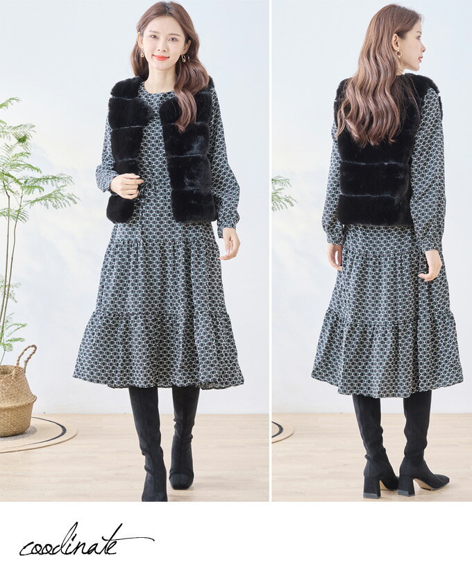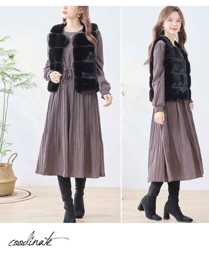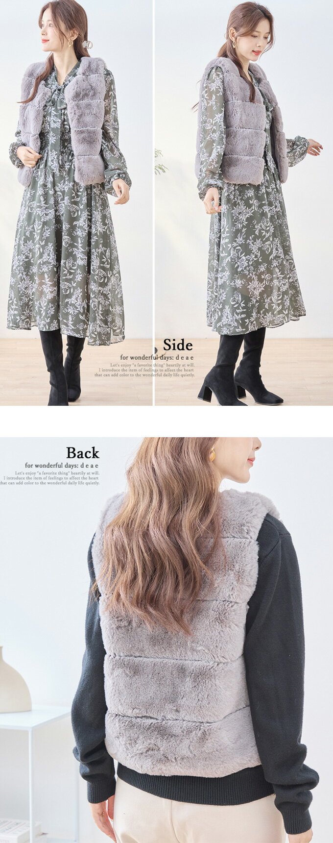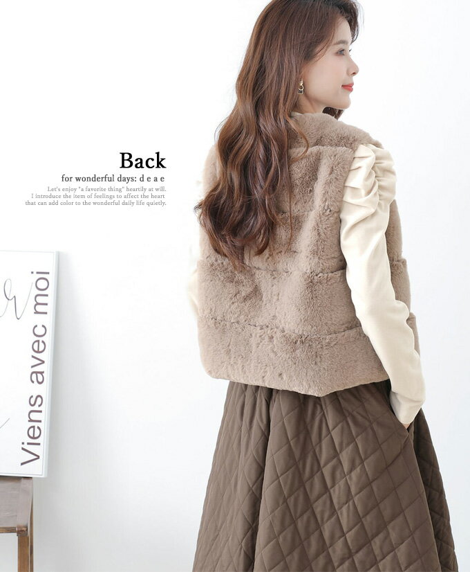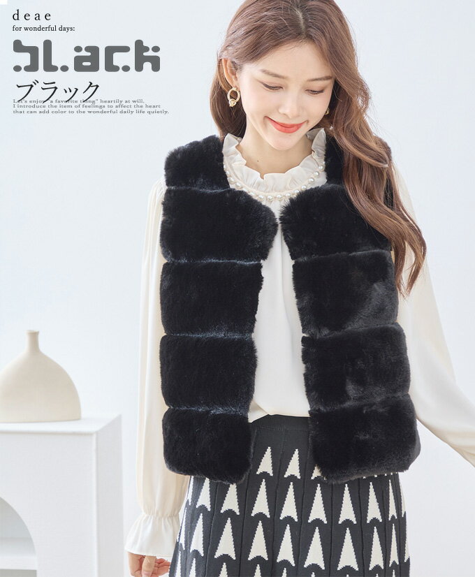 エコファーベスト ふわふわ 可愛い お洒落 ミディアム丈 ショート丈 フェイクファー ベスト 羽織り フェミニン 華やか 上品 綺麗め カジュアル 「ふわふわ上品なめらかエコファーベスト」