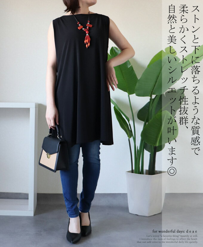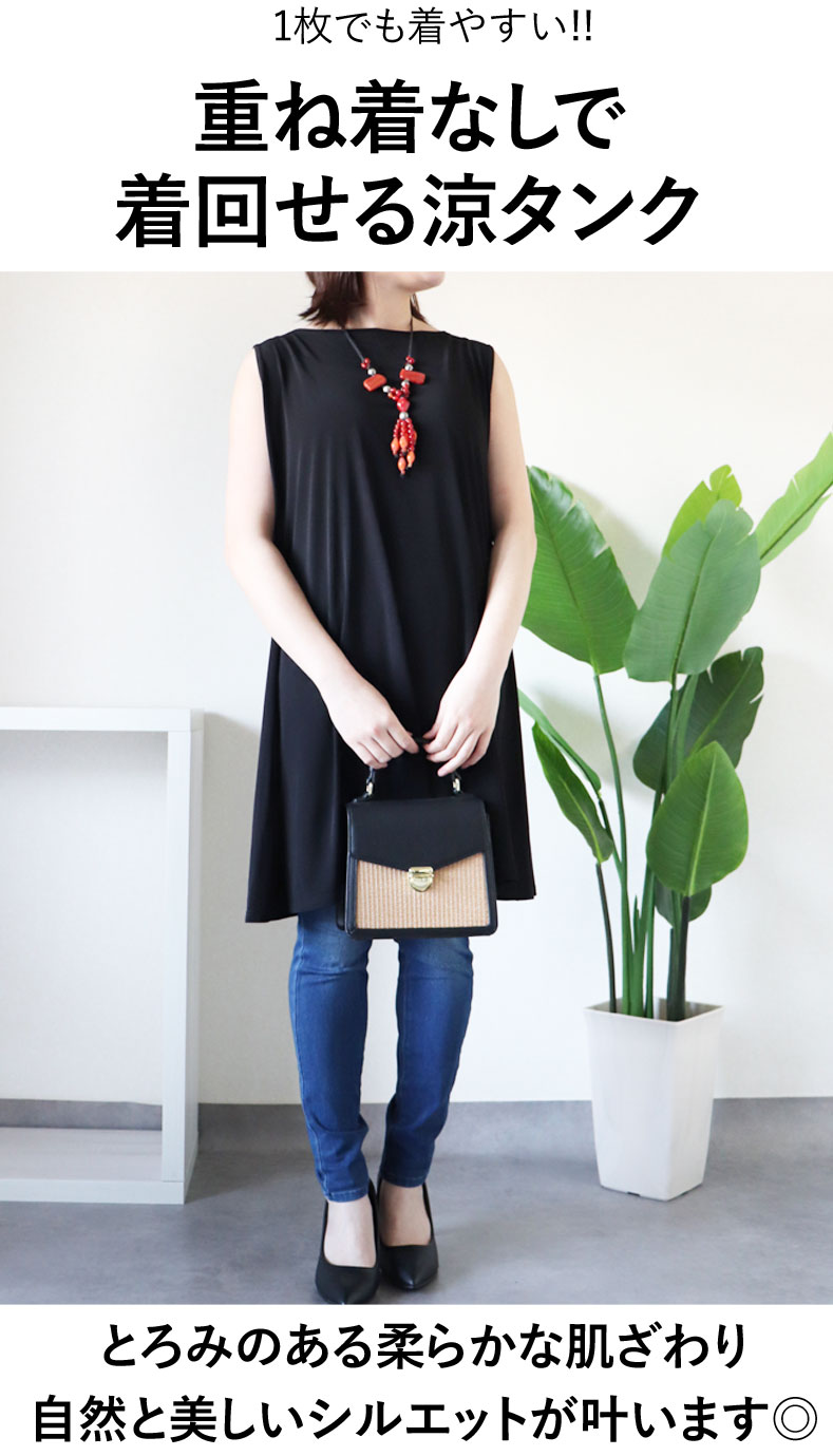 トップス タンクトップ キャミソール ロング丈 レディース ストレッチ 春夏秋 Aライン チュニック 着回し カジュアル 30代 40代 50代 60代 「重ね着なしで1枚で着やすい!! 着回せる涼タンク」