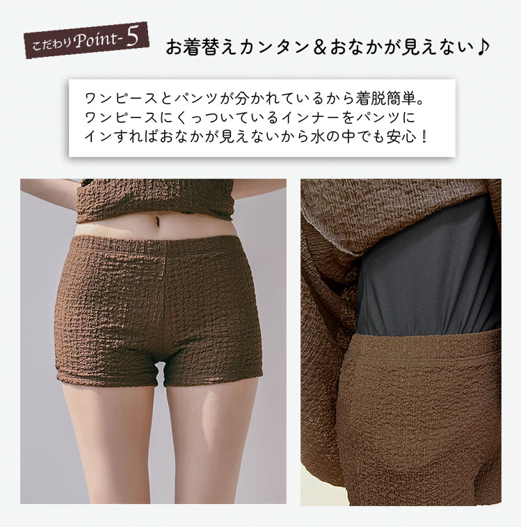 水着 ワンピース 体型カバー セパレート ビキニ レディース 女性 卒業旅行 フリル フレアパンツ 可愛い おしゃれ プール 海 シンプル 細見え 二の腕カバー 露出控えめ ブラウン ブラック sw007