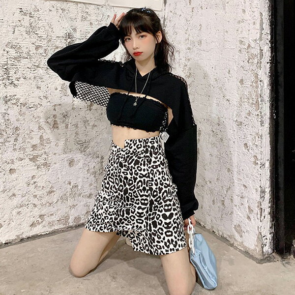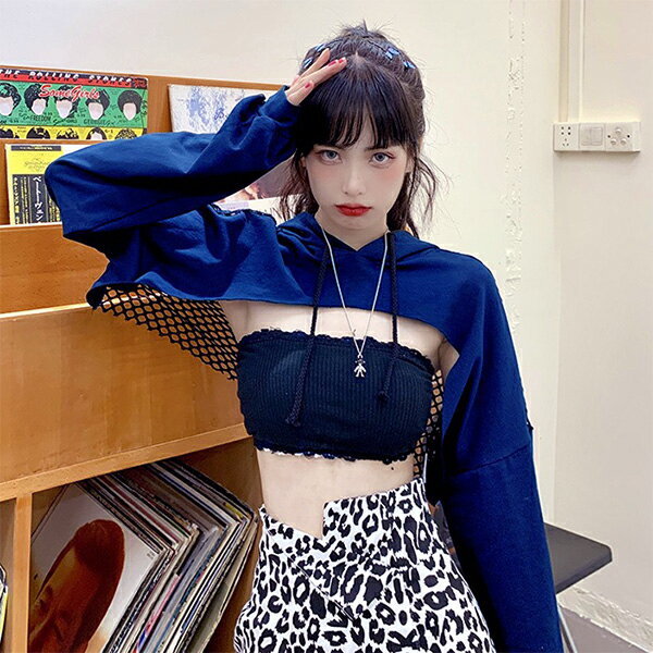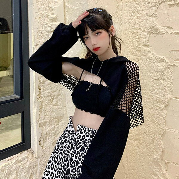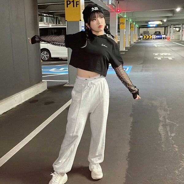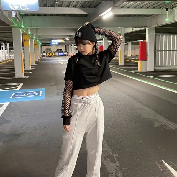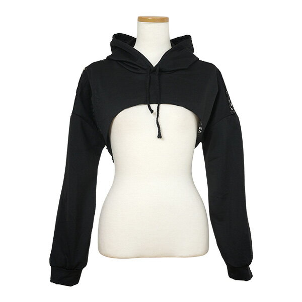 ダンス 衣装 ヒップホップ ショート丈 パーカー トップス 韓国 ファッション メッシュ 袖 長袖 重ね着風 ブラック ダンス衣装
