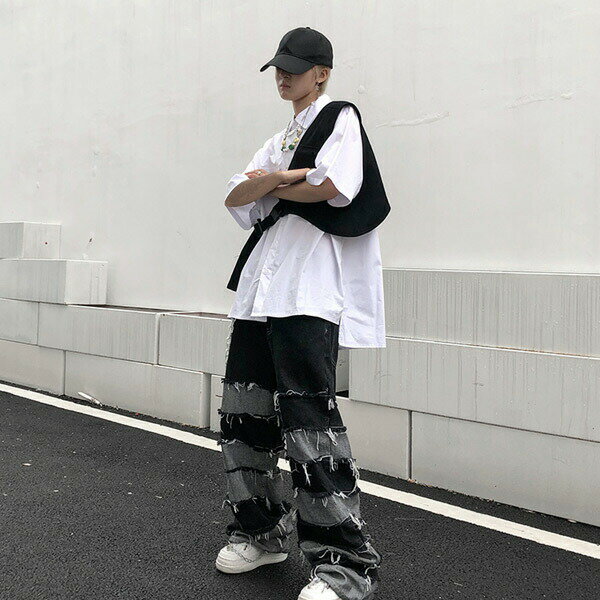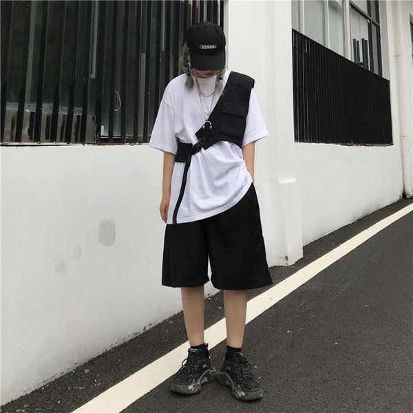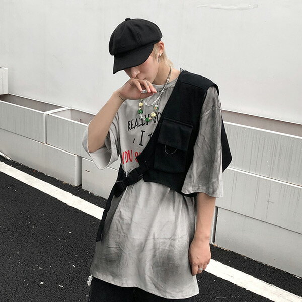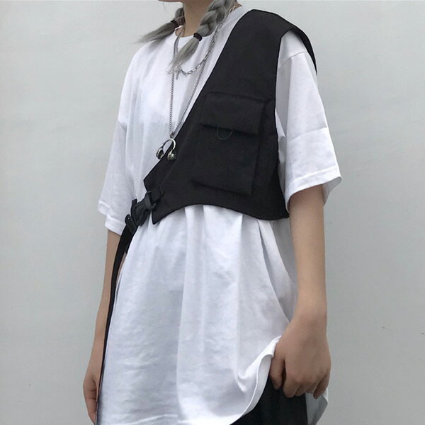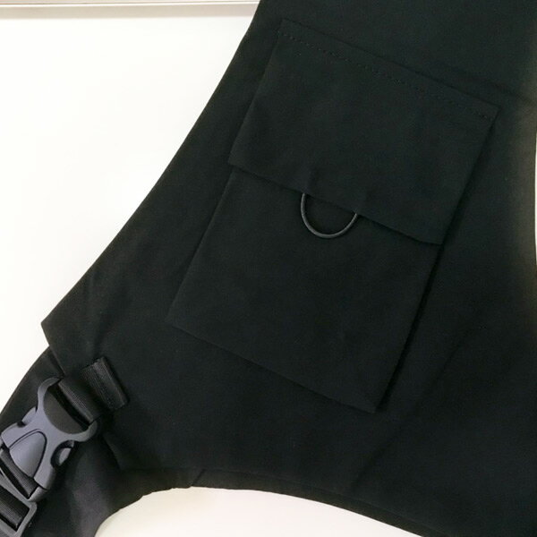 ワンショルダーベスト フラップポケット付き ブラック ダンス 衣装 ヒップホップ コスチューム 韓国ファッション 個性的 服 原宿系