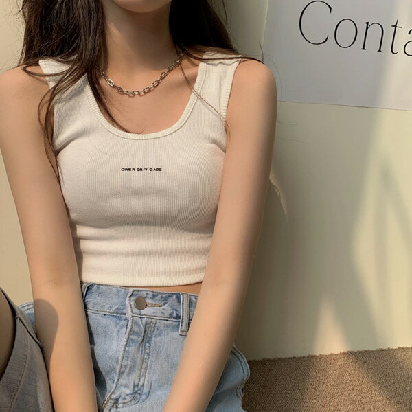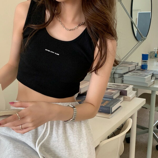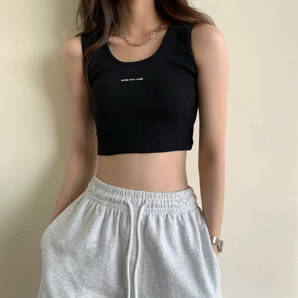 タンクトップ リブタンクトップ ショート丈 クロップド丈 インナー ロゴプリント ダンス 衣装 ヒップホップ コスチューム 韓国ファッション 夏服 ノースリーブ トップス