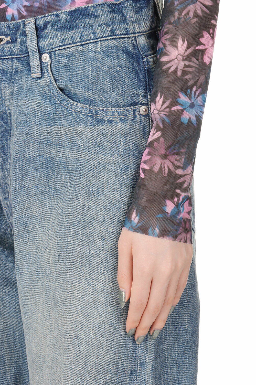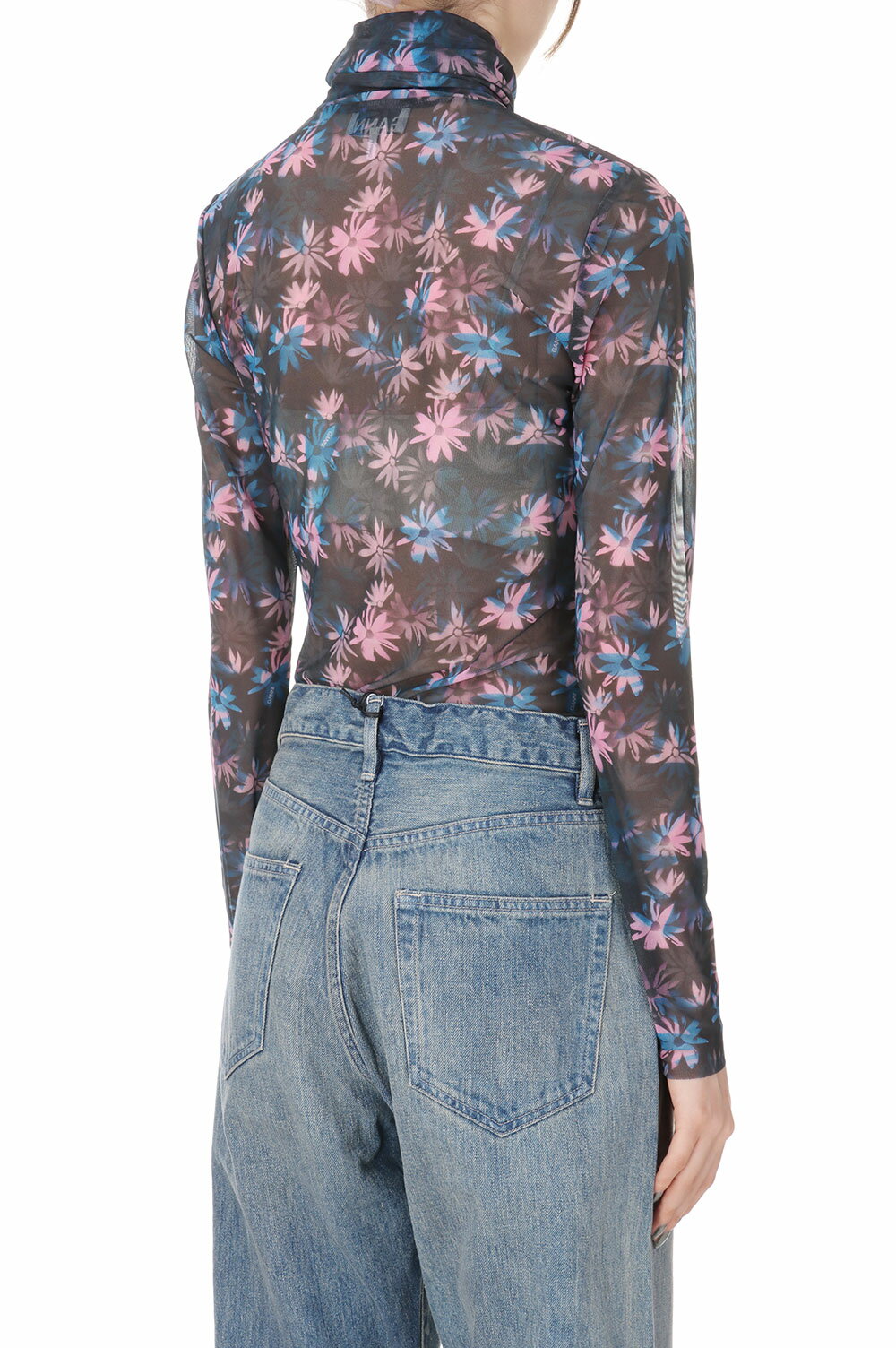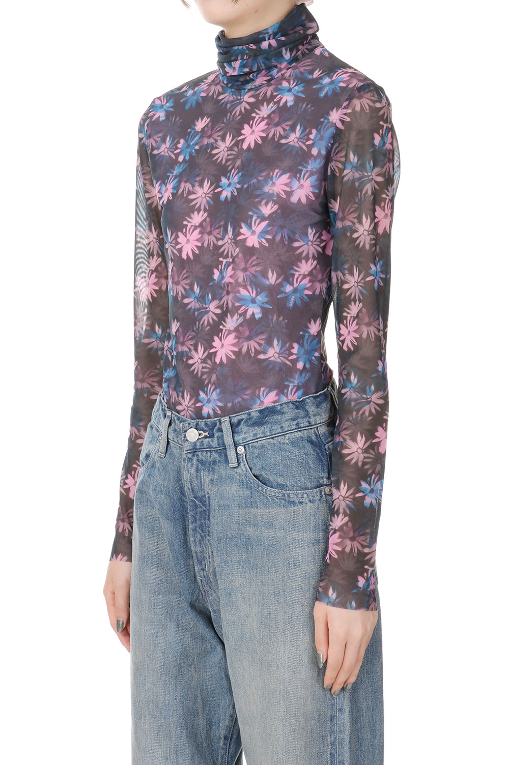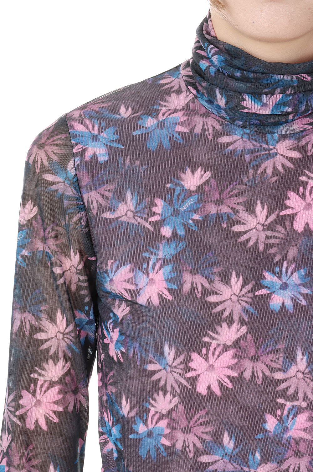 【35%OFF】Printed Mesh Long Sleeve Fitted Rollneck -Daisy Spray Lilac Sachet (T3289) GANNI(ガニー)