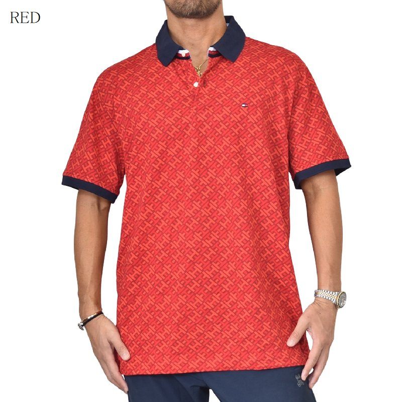 大きいサイズ メンズ トミーヒルフィガー TOMMY HILFIGER 半袖 ポロシャツ ワンポイント 総柄 ゴルフウエア XXL