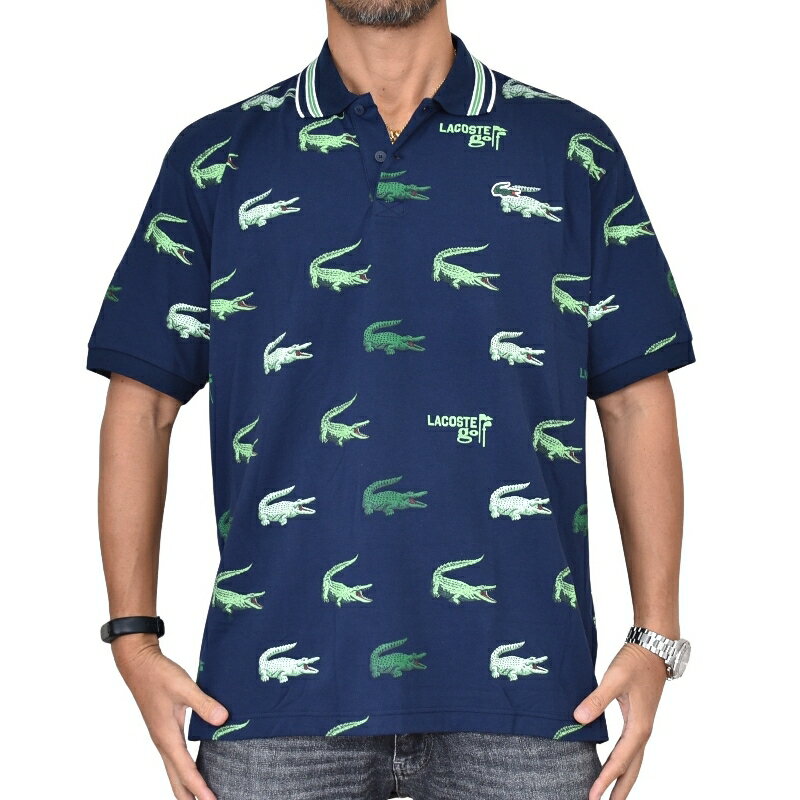 大きいサイズ メンズ LACOSTE ラコステ 総柄 ゴルフ ポロシャツ ウルトラドライ Classic Fit XXL XXXL