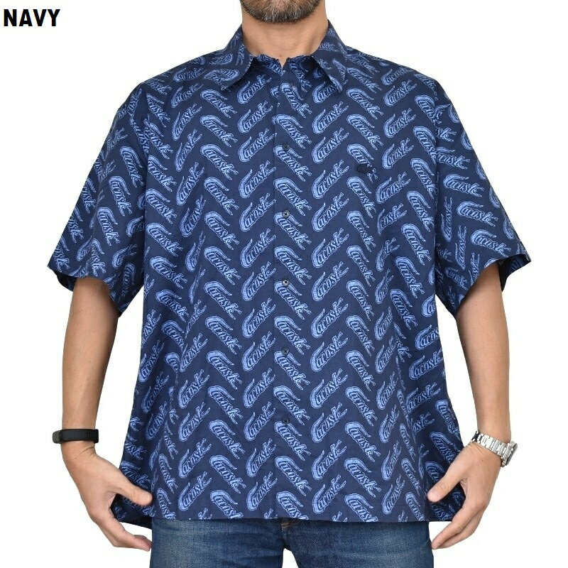 大きいサイズ メンズ ラコステ LACOSTE 半袖シャツ トーナルカラーリング 総柄 Short Sleeve Vintage Print Shirt XXL