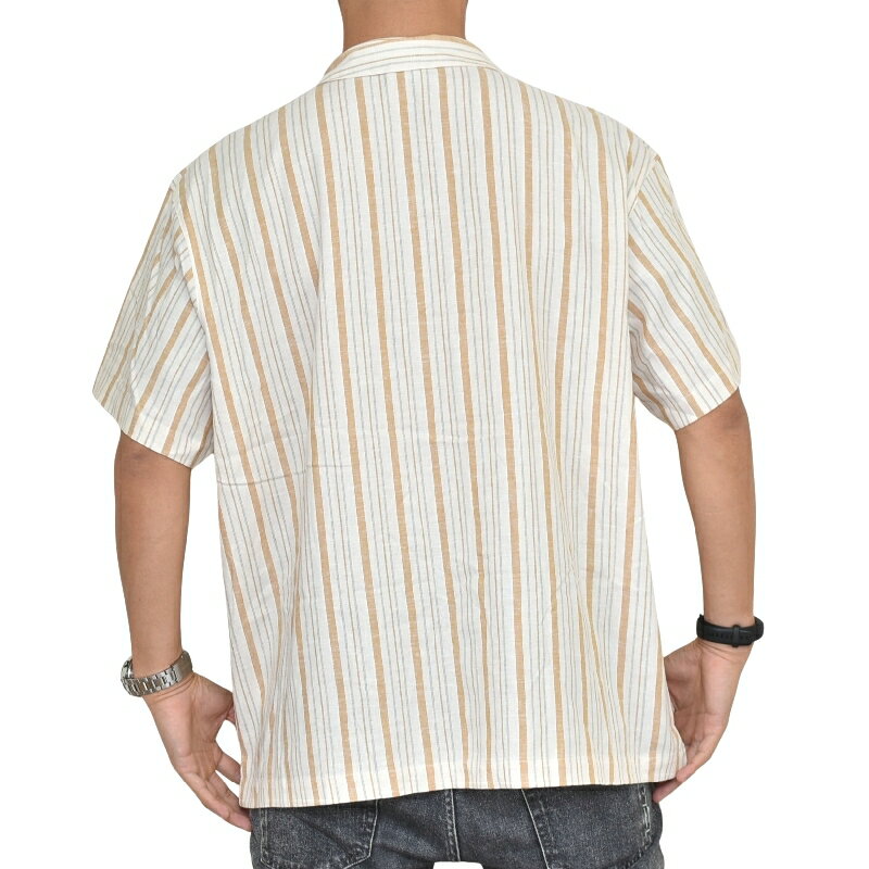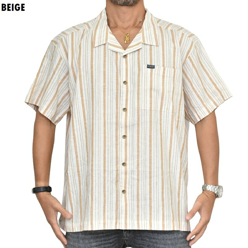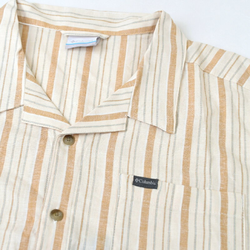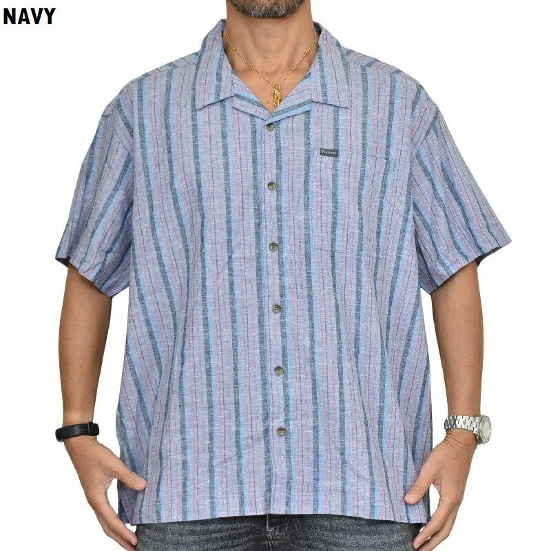 大きいサイズ メンズ Columbia コロンビア リネン 麻 半袖シャツ ストライプ柄 開襟 ポケット XXL