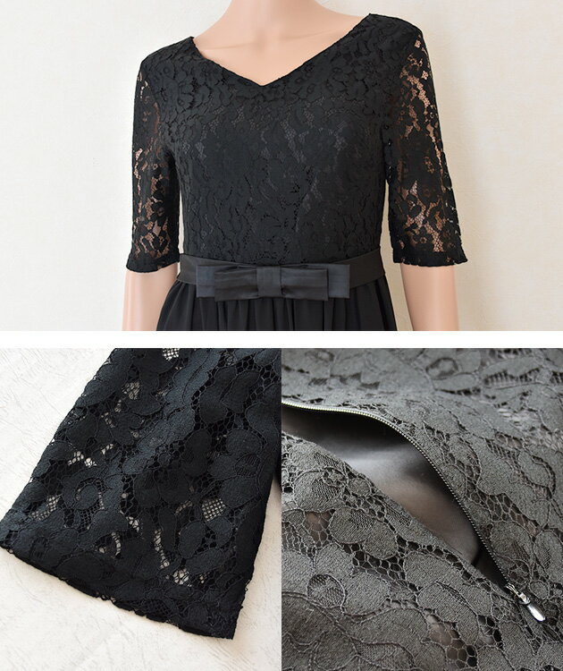 パーティードレス ワンピース ドレス ロング丈 Aライン 結婚式 披露宴 二次会 お呼ばれ 五分袖フォーマル 上品 レディース 20代 30代 春 夏 秋 冬 花柄レース黒色 ブラック 紺色 ネイビー 大きいサイズ 他と被らない