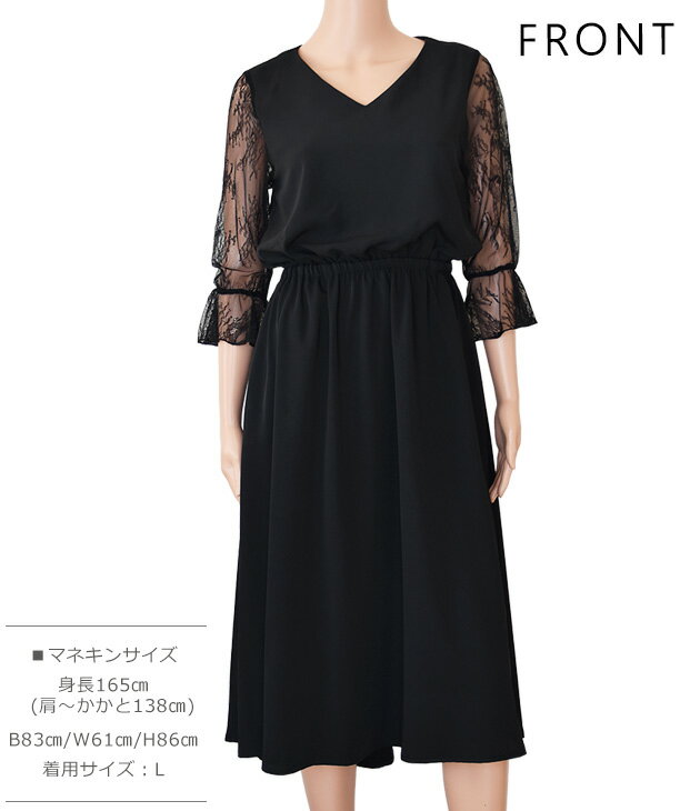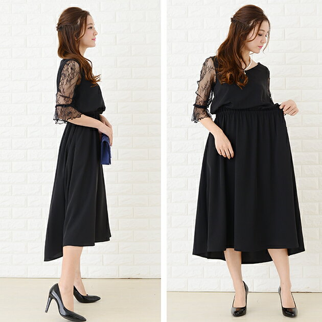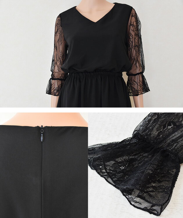 ロングドレス ワンピース レディース 七分袖 チュール袖 パーティードレス フレアスカート ロング丈 結婚式 二次会 お呼ばれ パーティー 20代 30代 春 夏 秋 冬 大きいサイズ 黒色 ブラック 紺色 ネイビー他と被らない
