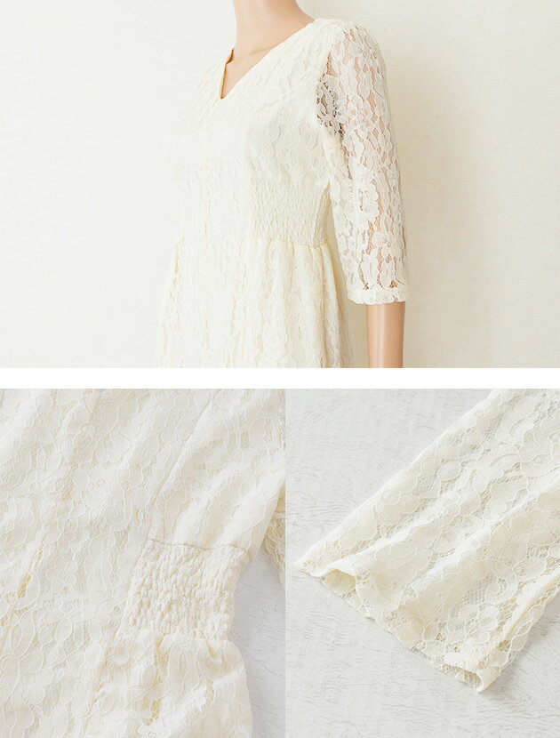 パーティードレス 総レース ワンピース Vネック レース袖 シースルー袖 7分袖 ロング丈 結婚式 披露宴 二次会 お呼ばれ 黒 ブラック ブルーグリーン アイボリー 20代 30代 レディース フォーマル 春 夏 秋 冬 他と被らない