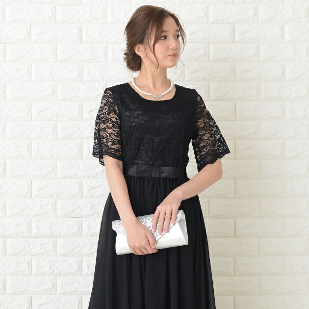 ロングドレス パーティードレス ワンピース マキシワンピ レディース 五分袖 結婚式 二次会 お呼ばれ パーティー ウエストリボン 花柄 レース フレア袖 シフォン 20代 30代 40代 大きいサイズ 黒色 ブラック 紺色 ネイビー ミントグレー 春 夏 秋 冬 袖あり