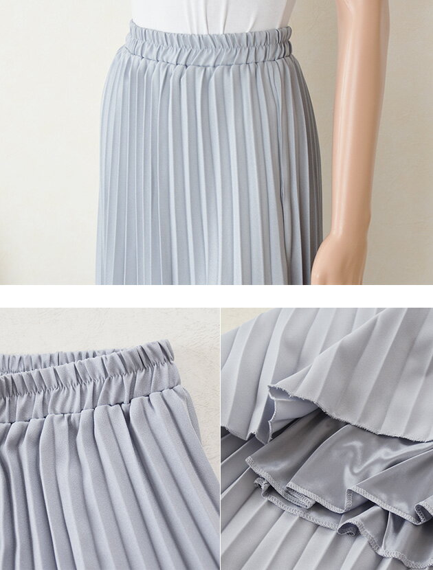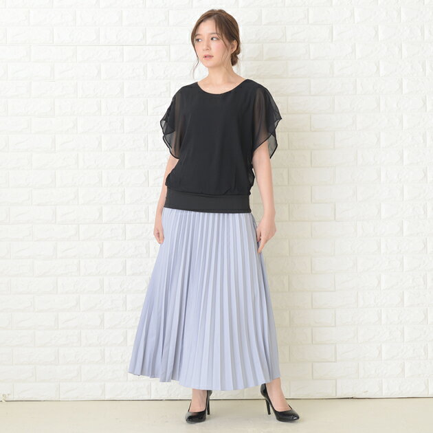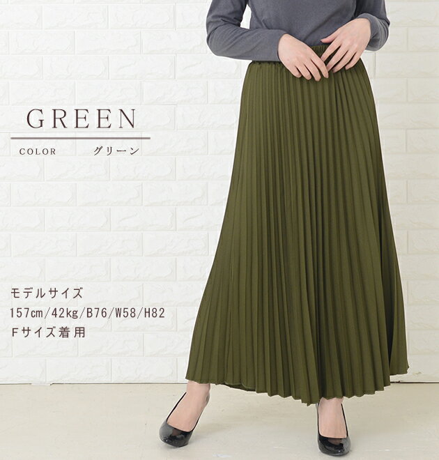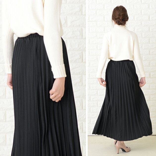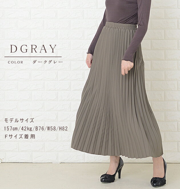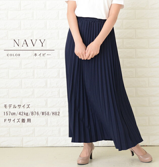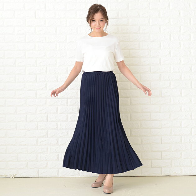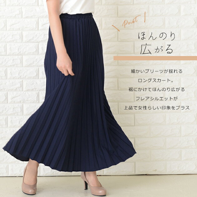 ロングプリーツスカート 無地 スカート きれいめ シンプル ロング丈 女子会 デート ブラック グレー ネイビー 20代 30代 40代 レディース 春 夏 秋