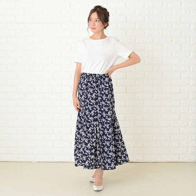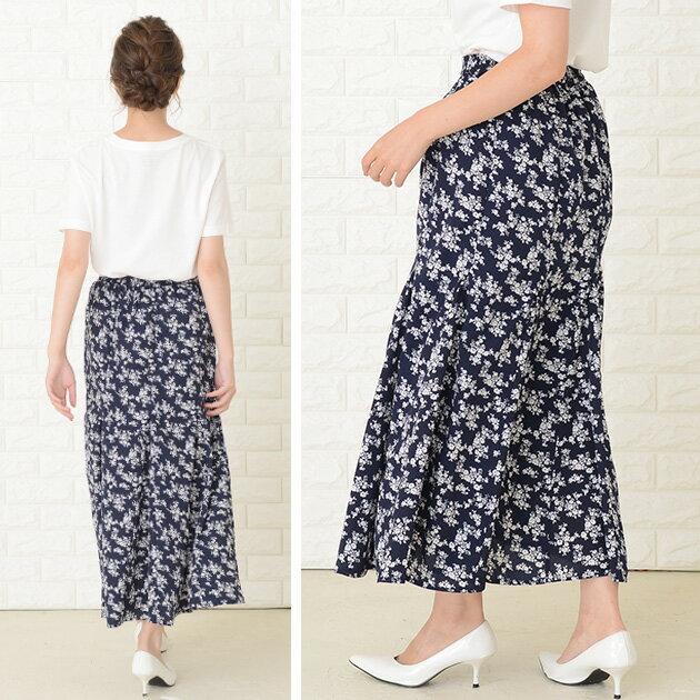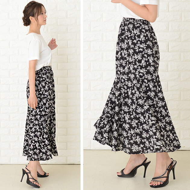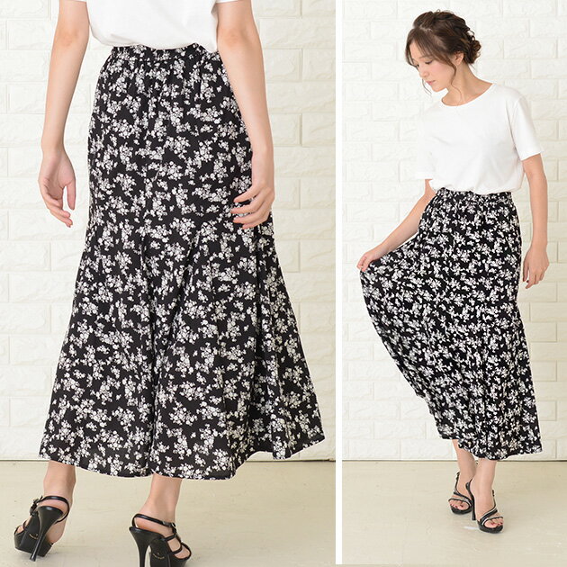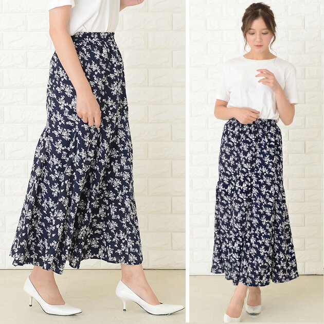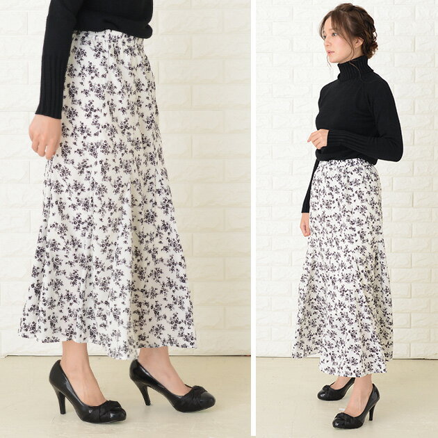 花柄ロングスカート フラワープリント レース スカート きれいめ 小花柄 ロング丈 女子会 デート ブラック nネイビー ホワイト 20代 30代 レディース 春 夏 秋 冬