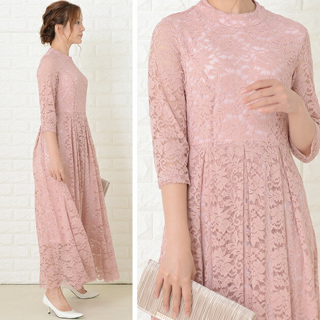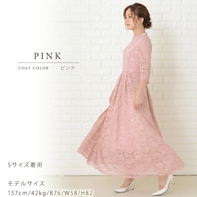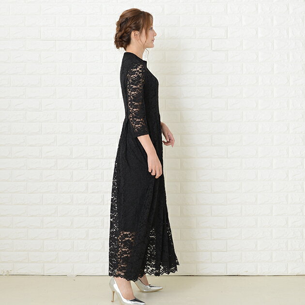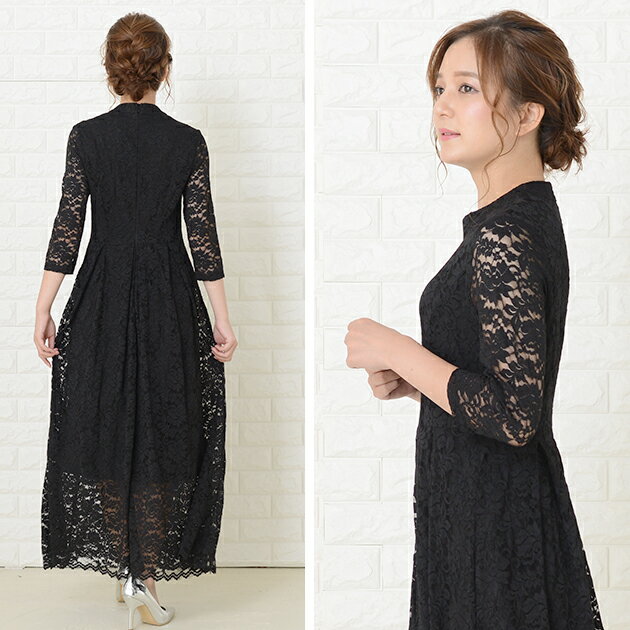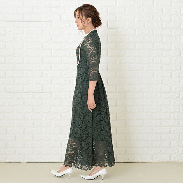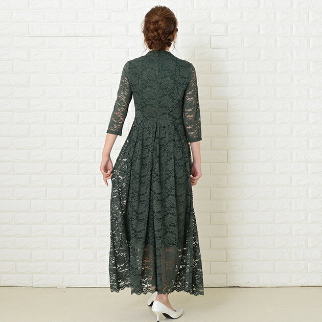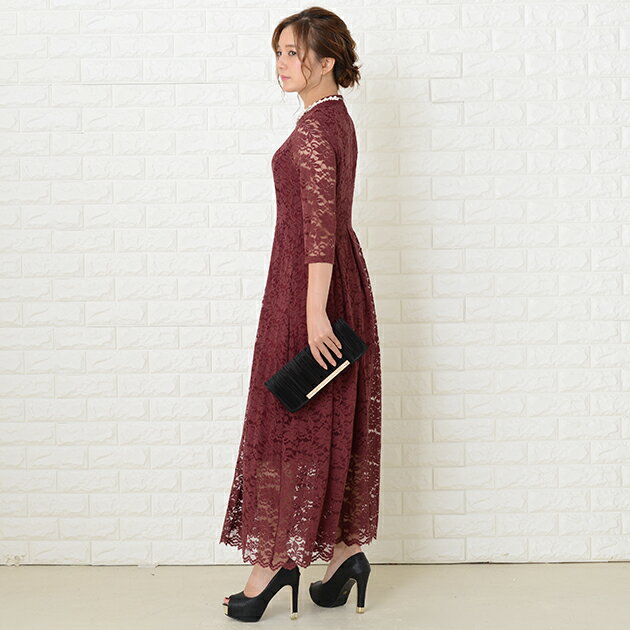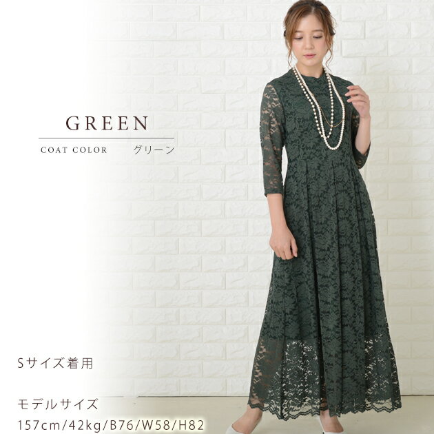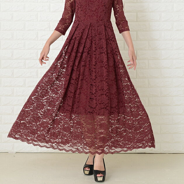 パーティードレス 総レース ワンピース ロングワンピース 七分袖 ロング丈 レディース 袖付き 結婚式 二次会 お呼ばれ 披露宴 卒業式 入学式 花柄 レース 大きいサイズ 20代 30代 40代 ブラック グリーン ワインレッド ピンク 春 夏 秋 冬