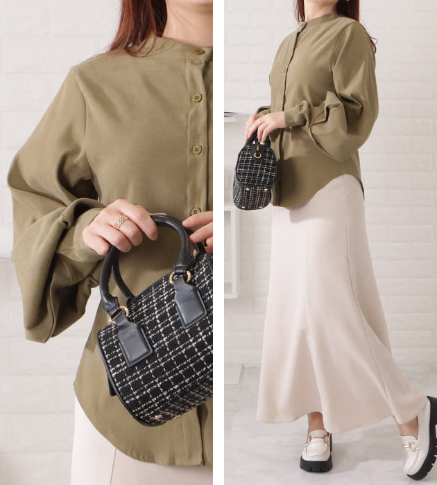 ボリュームスリーブシャツ シャツブラウス レディース オフィス カジュアル トレンド 長袖 トップス 20代 30代 40代 50代 大きいサイズ S M L XL
