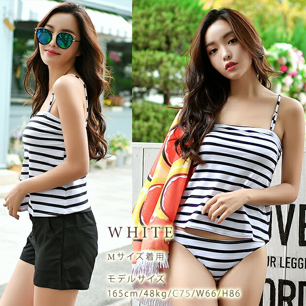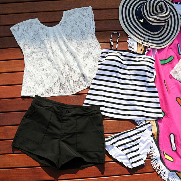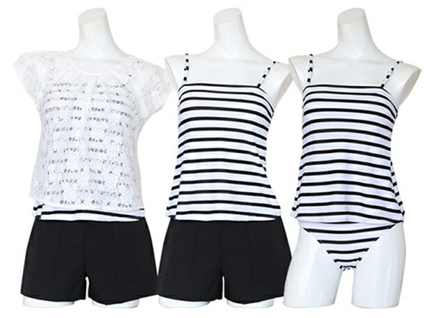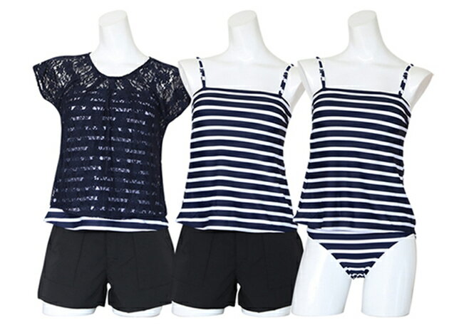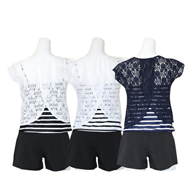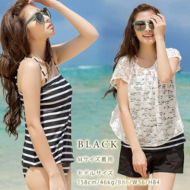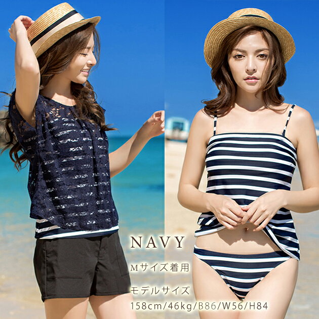 ボーダー柄 セパレート レースカバーアップ 水着 4点セット 体型カバー ショーパン ショートパンツ タンクトップ セパレート 水着4点 ママ 30代 40代 ノンワイヤー レディース かわいい タンキニ 大きいサイズ 新作