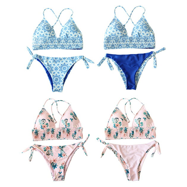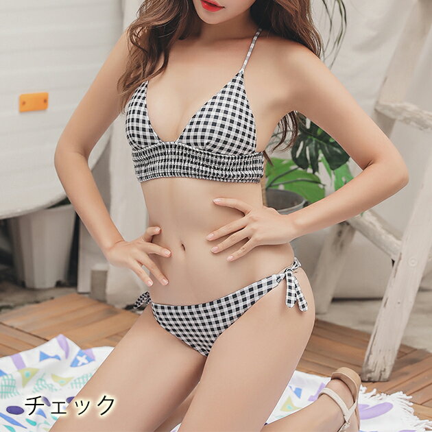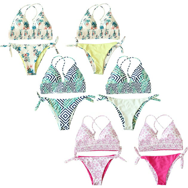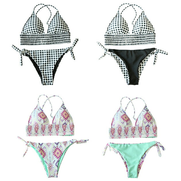 シャーリングビキニ リバーシブルショーツ 水着2点セットバンドゥー かわいい 女性 スイムウェア セパレート レディース ママ水着 海 プール ビーチ