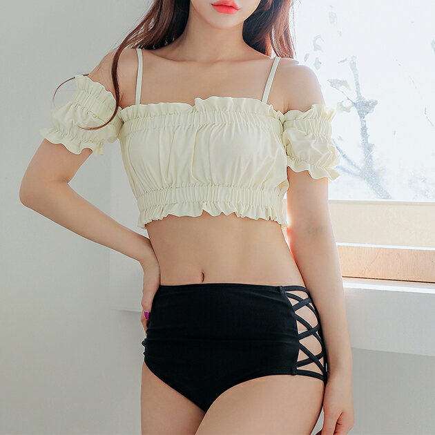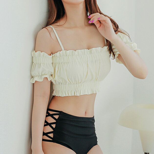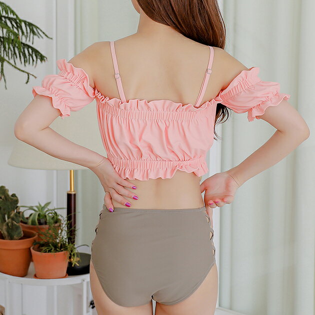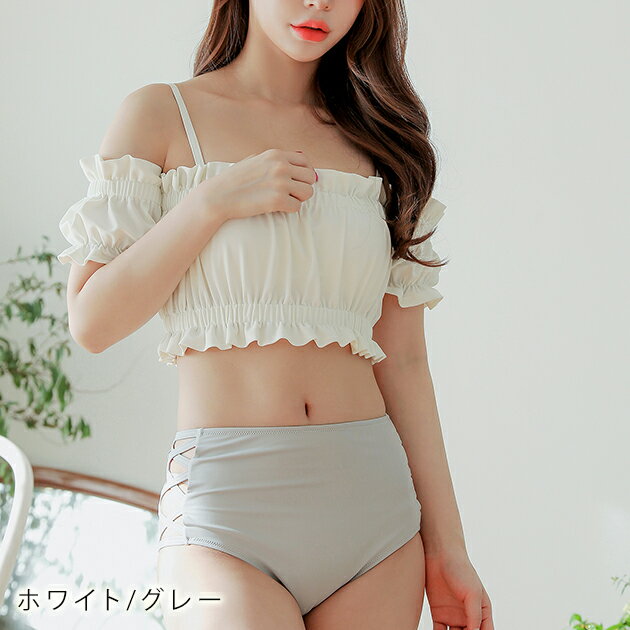 オフショルダー ハイウエストショーツ ビキニ水着2点セット ママ 30代 40代 ボトム ゆるトップス 新作 タンキニ アウター 可愛い ビーチ レディース セット水着
