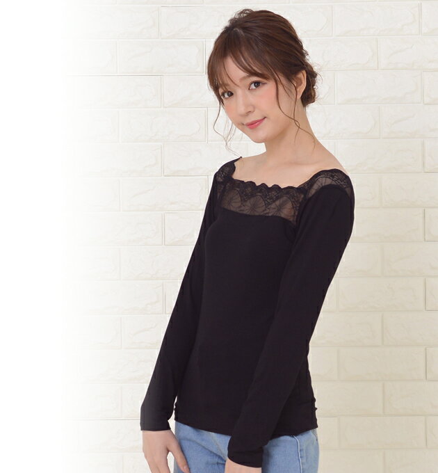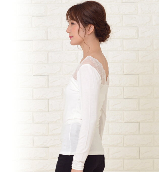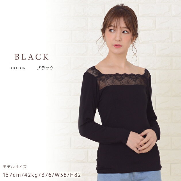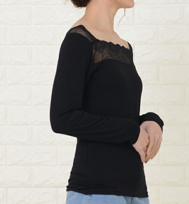 2WAY レーストップス 長袖 Vネック スクエアネック 繊細レース インナー トップス 伸縮性 フェミニン セクシー おしゃれ 黒 ブラック 白 ホワイト 水色 ブルー秋 冬 夏 春 20代 30代 40代 レディース 前後2way