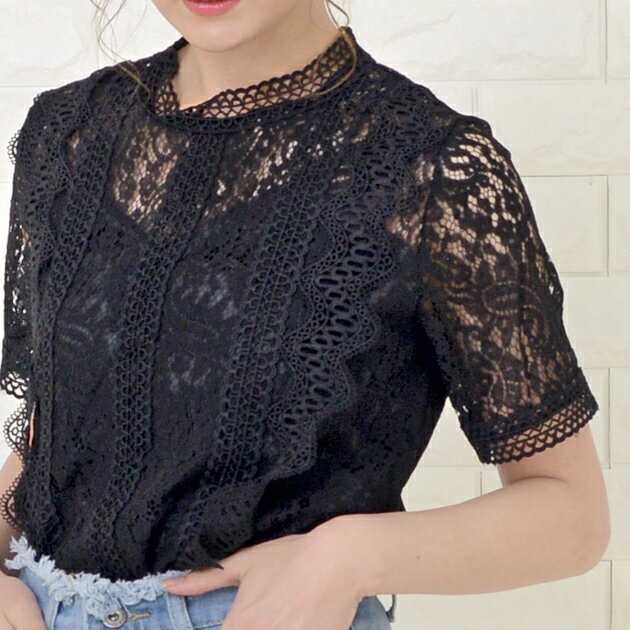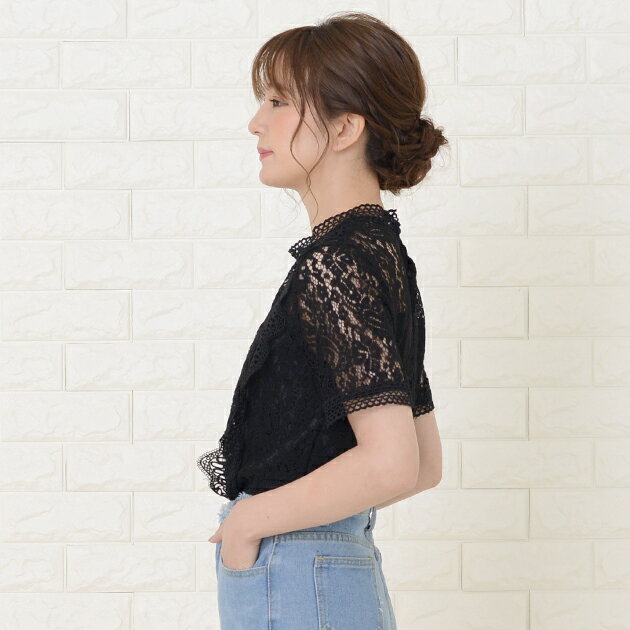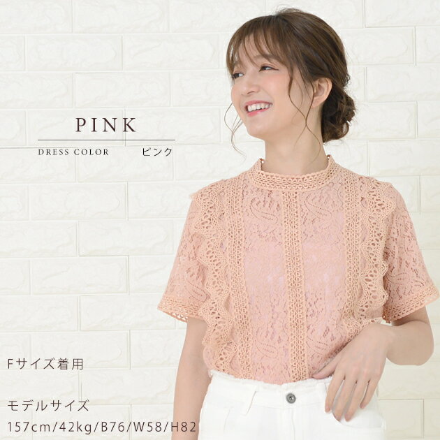 立ち襟 レース 半袖 ブラウス シャツ ホワイト ブラック ピンク 透かしレース フリル カットソー レース 上品 薄手 レディース 通 高襟 ハイネック パーティー 結婚式 フォーマル 二次会 ビジネス 通勤 OL ブラウス レースシャツ レースブラウス ハイネック