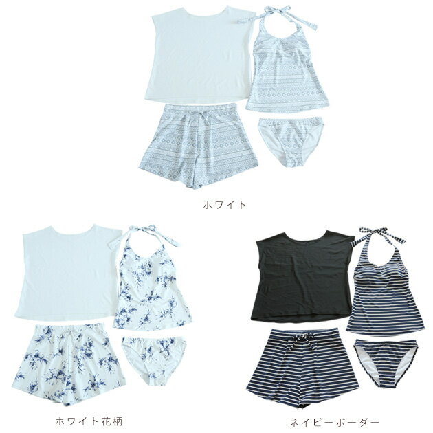 カバーアップ付 ホルターネックタンキニ 水着4点セット セパレート キャミ ノースリーブ 新作 タンキニ 可愛い ビーチ レディース セット水着
