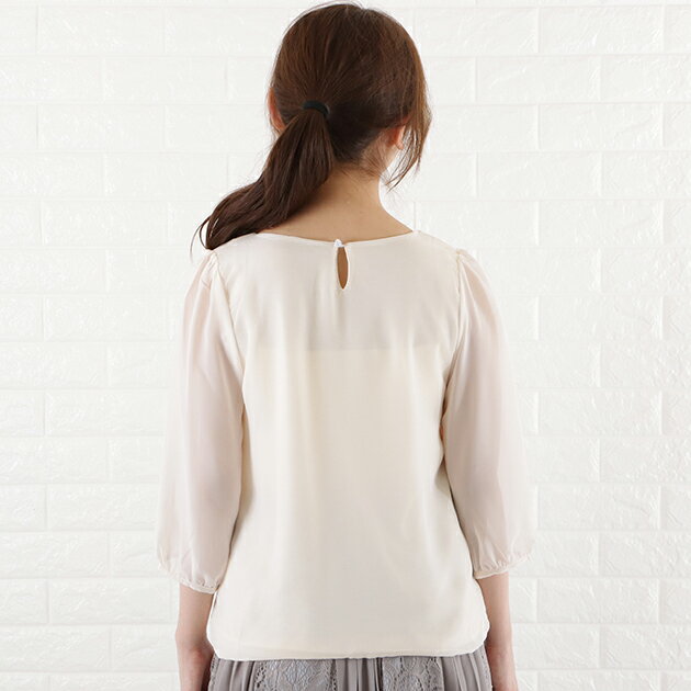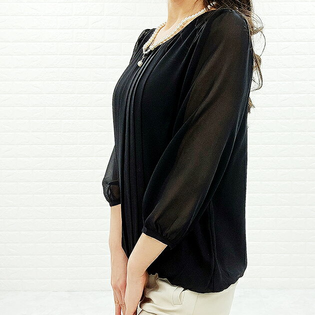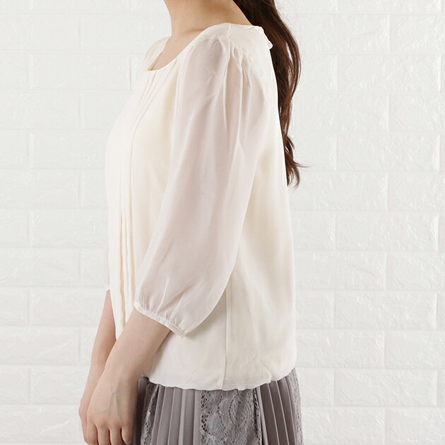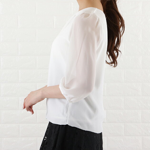 シフォン レース ブラウス 七分袖 レディース オフィス カジュアル 春 夏 シースルー袖 長袖 お呼ばれ 通勤 OL きれいめ ホワイト 白 ブラック 黒 グレー ネイビー フォーマル 丸襟 トップス 入学式 入園式 卒業式 卒園式 七五三 お受験 結婚式 母 ママ