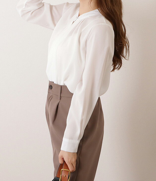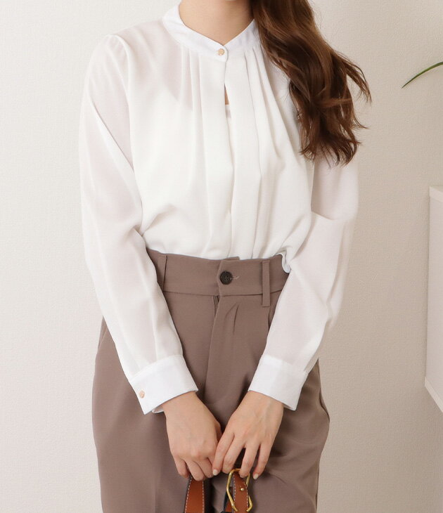 フロントタック ブラウス レディース オフィス カジュアル 春 夏 長袖 お呼ばれ 通勤 OL きれいめ 華奢 ブラック 黒 グレー ネイビー モカ フォーマル トップス 入学式 入園式 卒業式 卒園式 七五三 お受験 結婚式 母 ママ