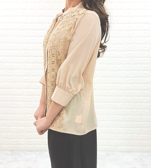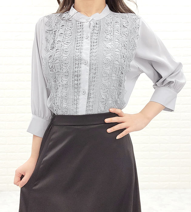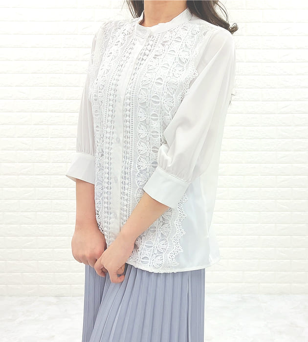 シフォンジョーゼット レースシャツ 七分袖 レディース オフィス カジュアル 春 夏 シースルー袖 長袖 お呼ばれ 通勤 OL きれいめ ホワイト 白 ブラック 黒 ベージュ ライトブルー 花柄 フォーマル トップス 入学式 入園式 卒業式 卒園式 七五三 お受験 結婚式 母 ママ