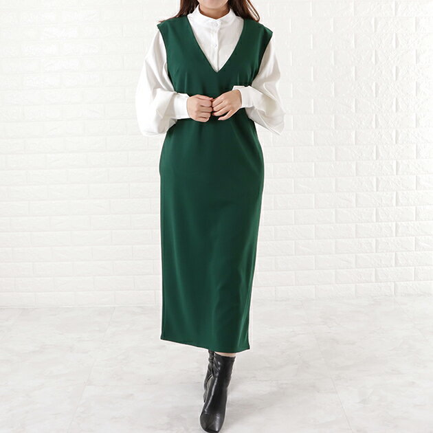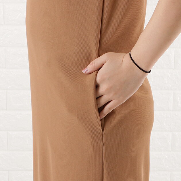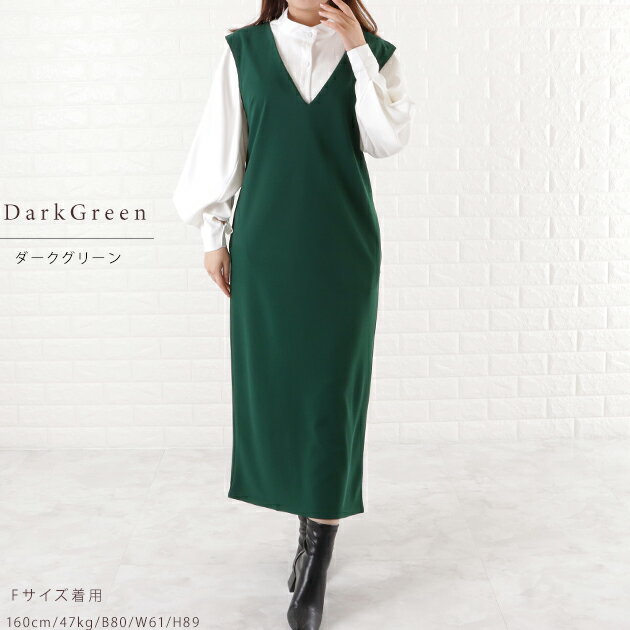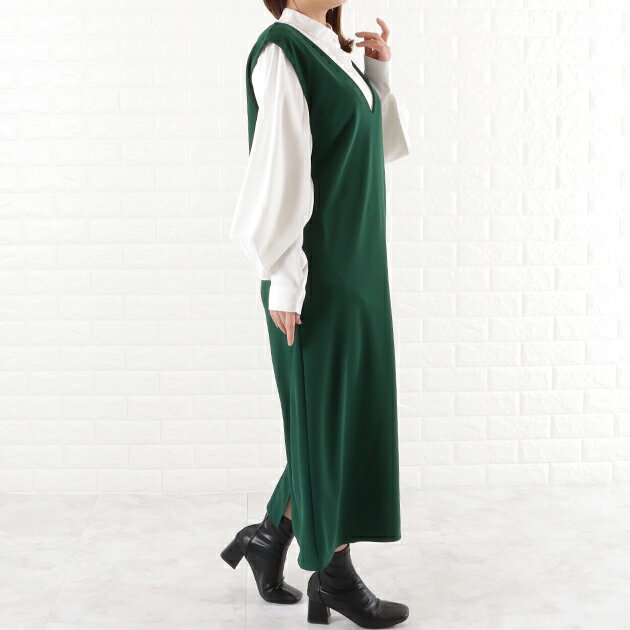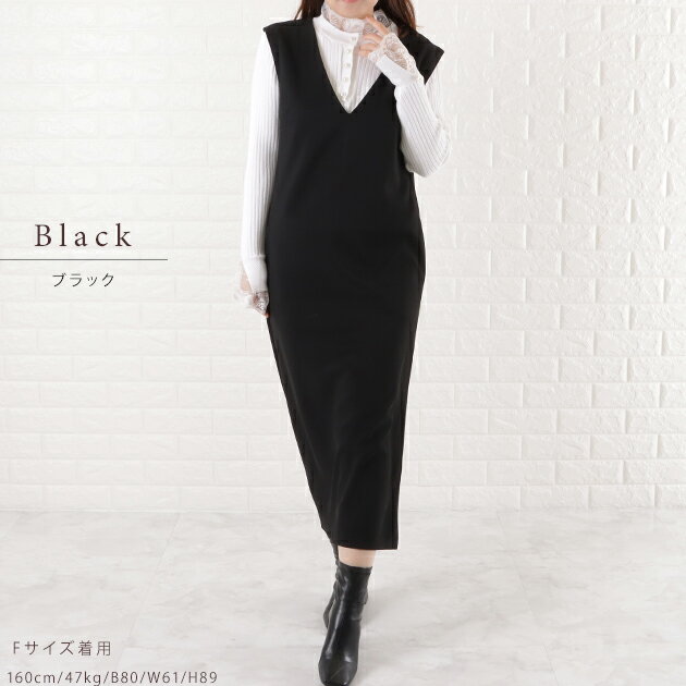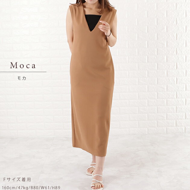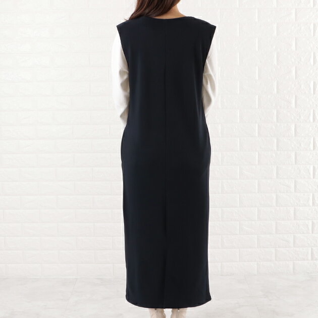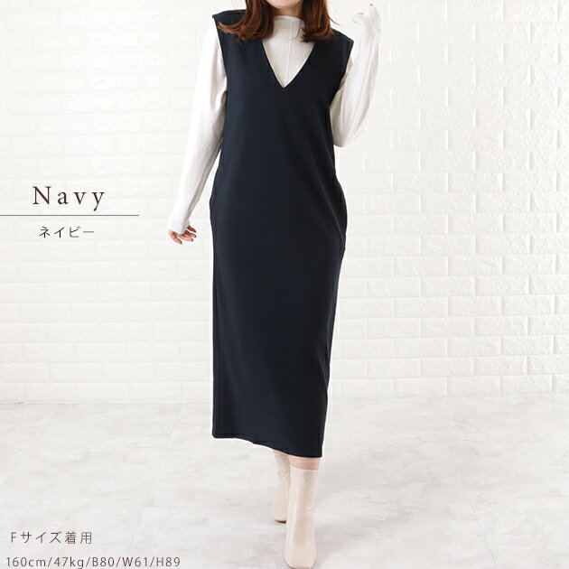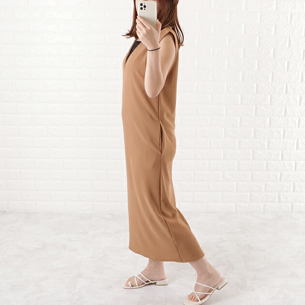 Vネックロング ジャンパースカート ジャンスカ ワンピース オールインワン ノースリーブ ポケット付き 前Vネック 体型カバー 黒 ダークグレー ネイビー モカ OL 春 夏 秋 冬 マタニティ シンプル カジュアル レディース