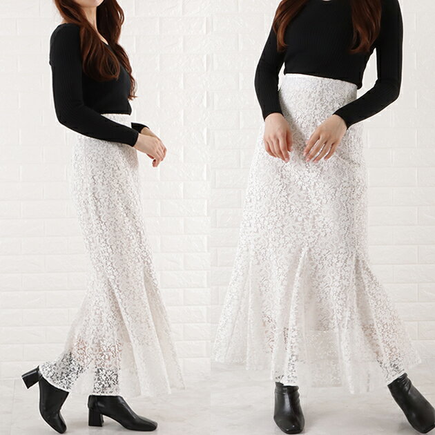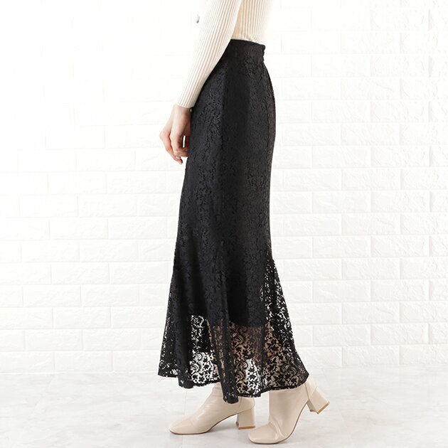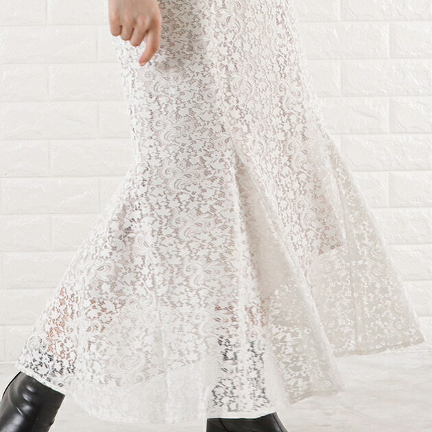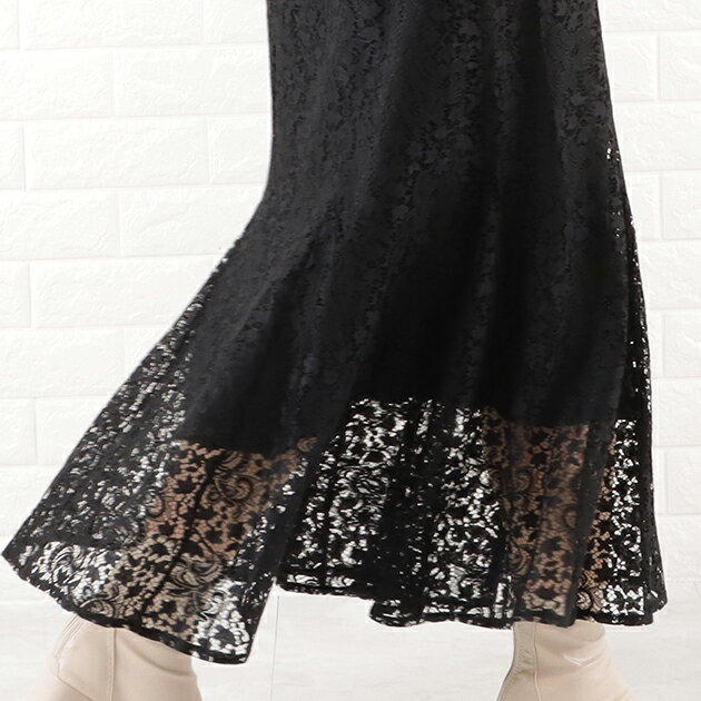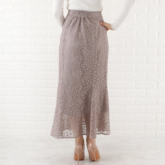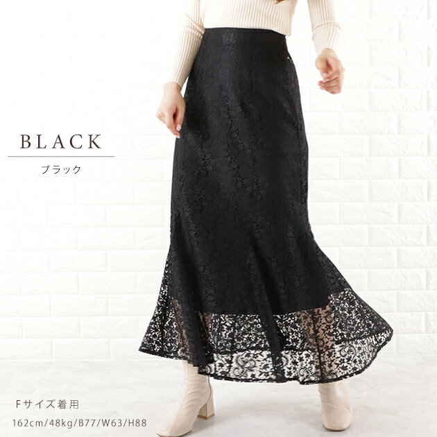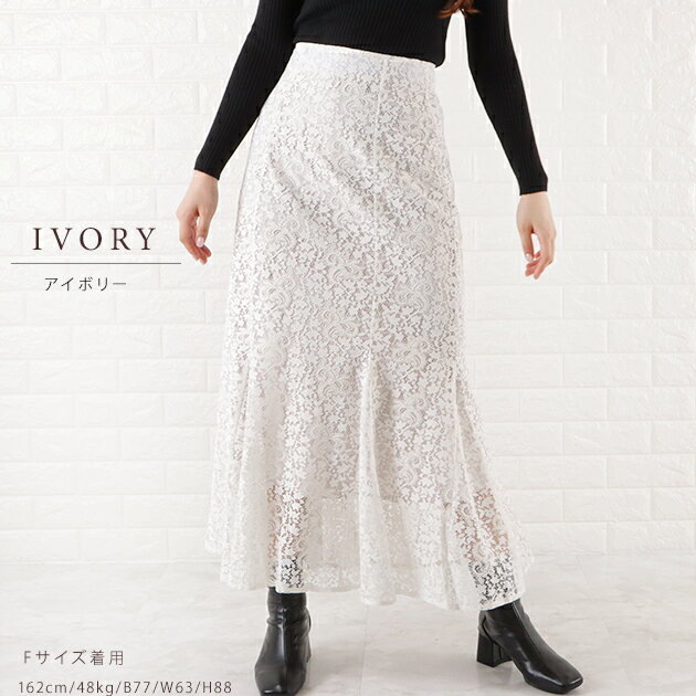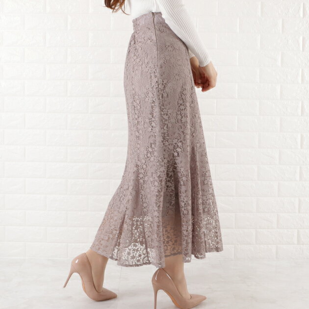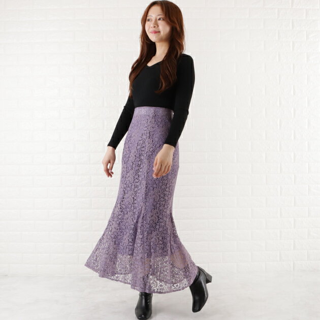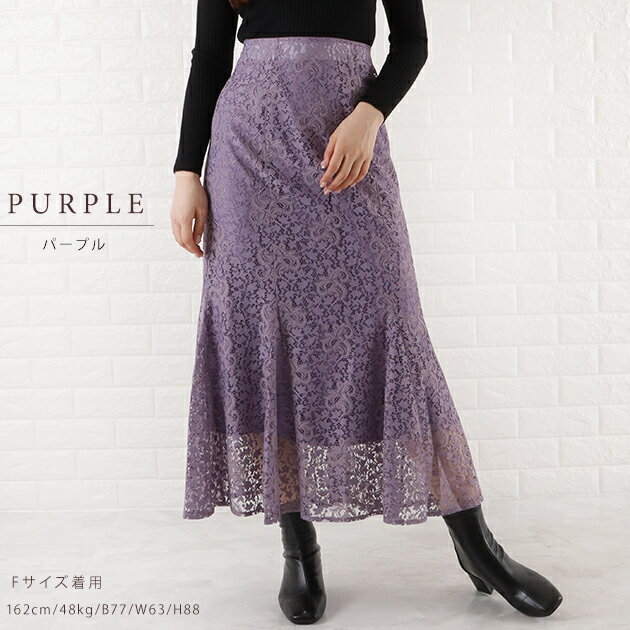 総レース マーメイド フレア スカート レディース ロング丈 Aライン 秋 冬 春 きれいめ フェミニン ガーリー 上品 オフィスカジュアル ブラック アイボリー パープル ピンク