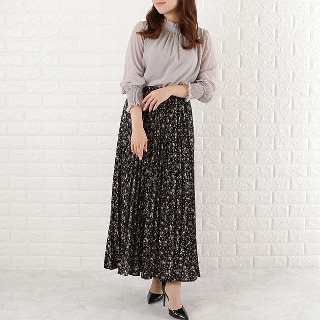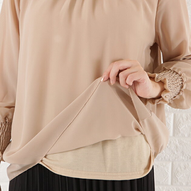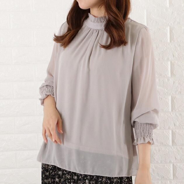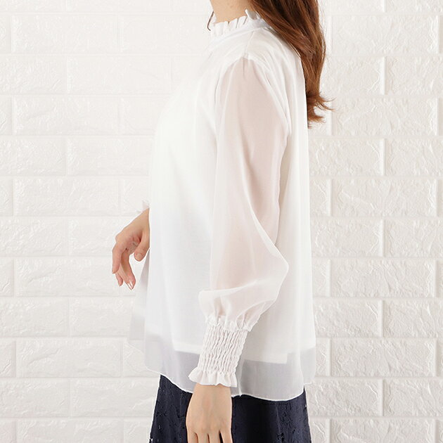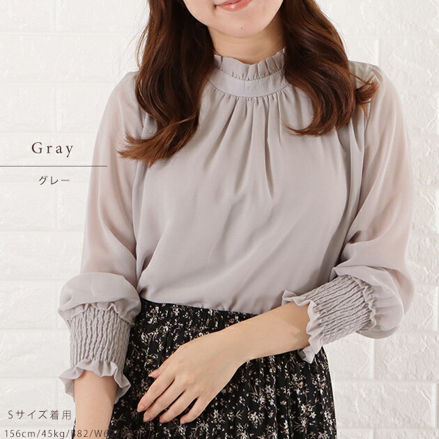 フリルネック シフォン ブラウス レディース トップス 長袖 シャーリング 無地 秋 冬 春 シンプル フェミニン ガーリー きれいめ オフィスカジュアル ホワイト ブラック ミント グレー