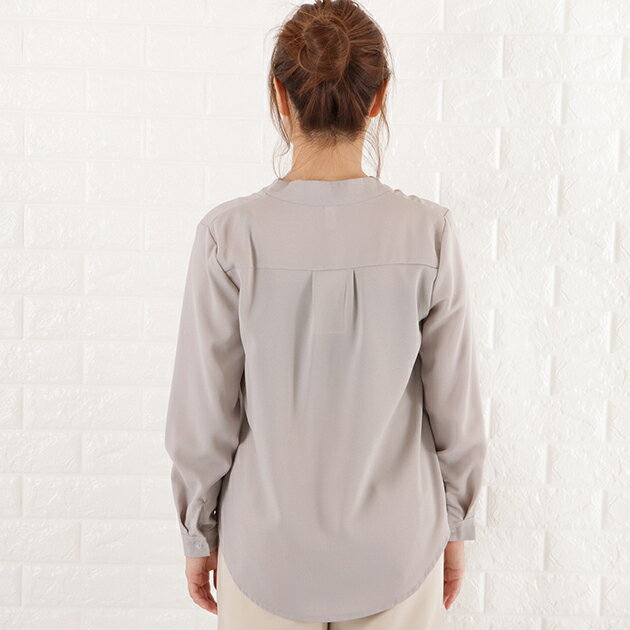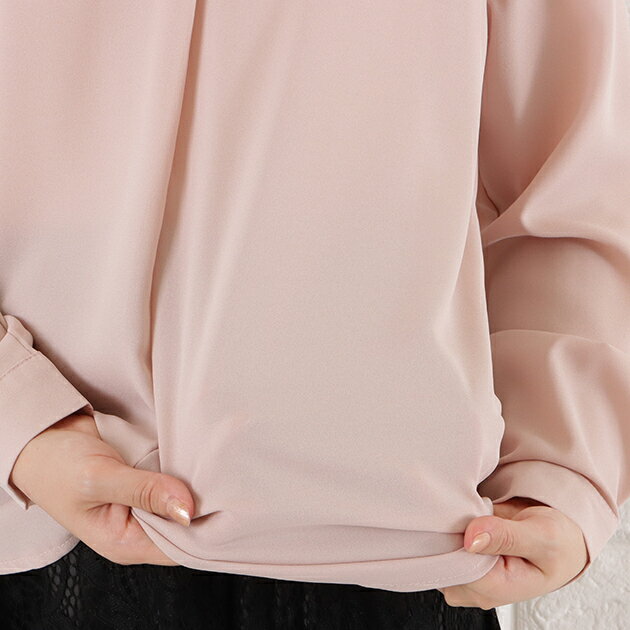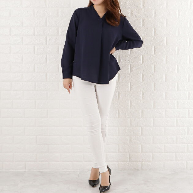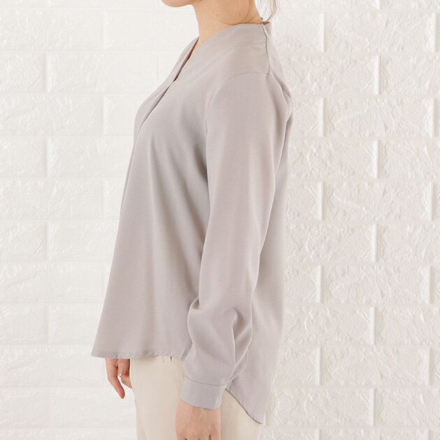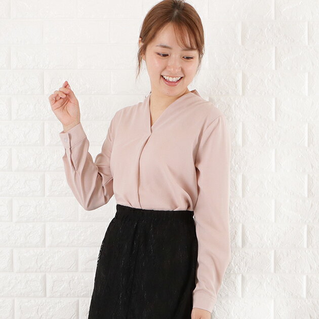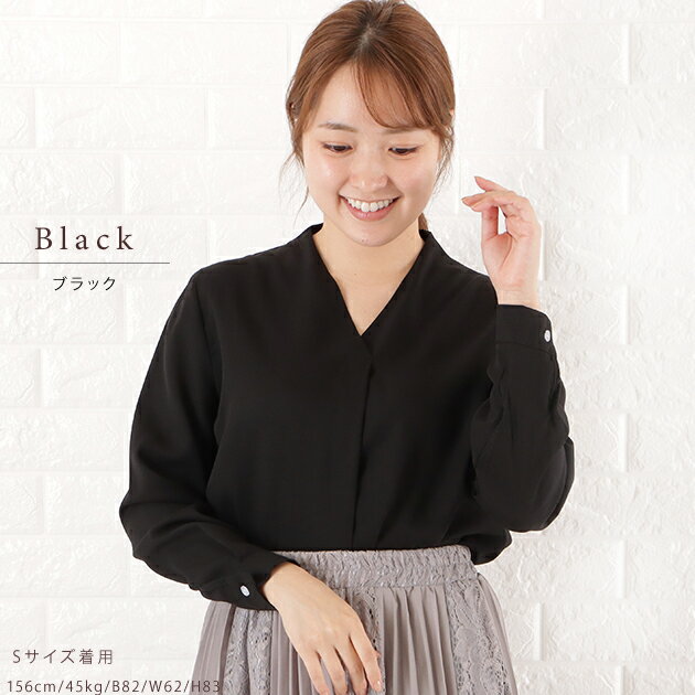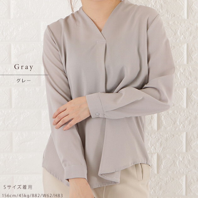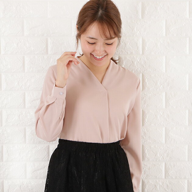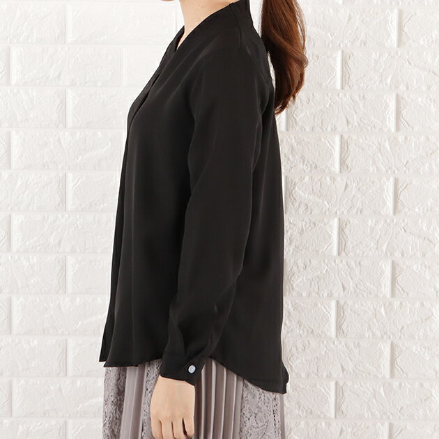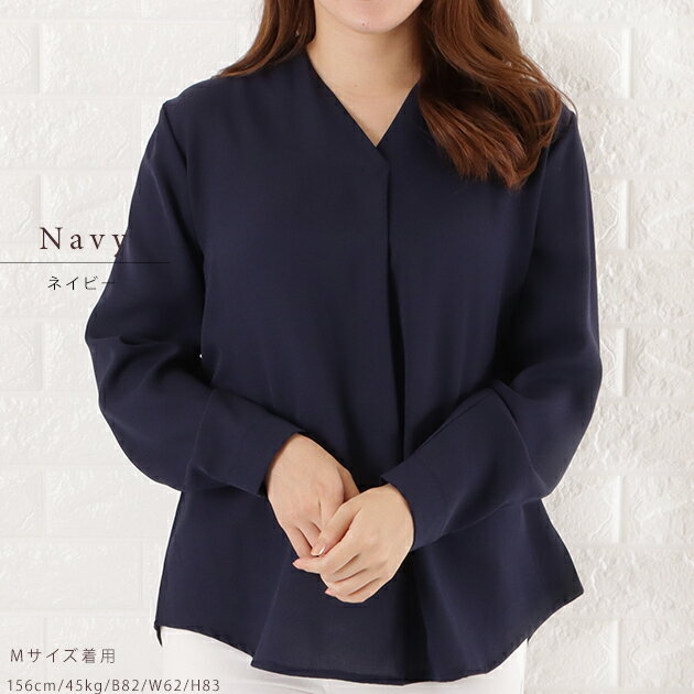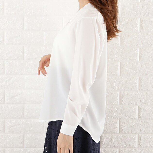 Vネック シフォン ブラウス レディース トップス 長袖 無地 秋 冬 春 シンプル フェミニン ガーリー きれいめ オフィスカジュアル ホワイト ブラック グレー ネイビー ピンク