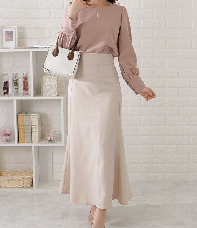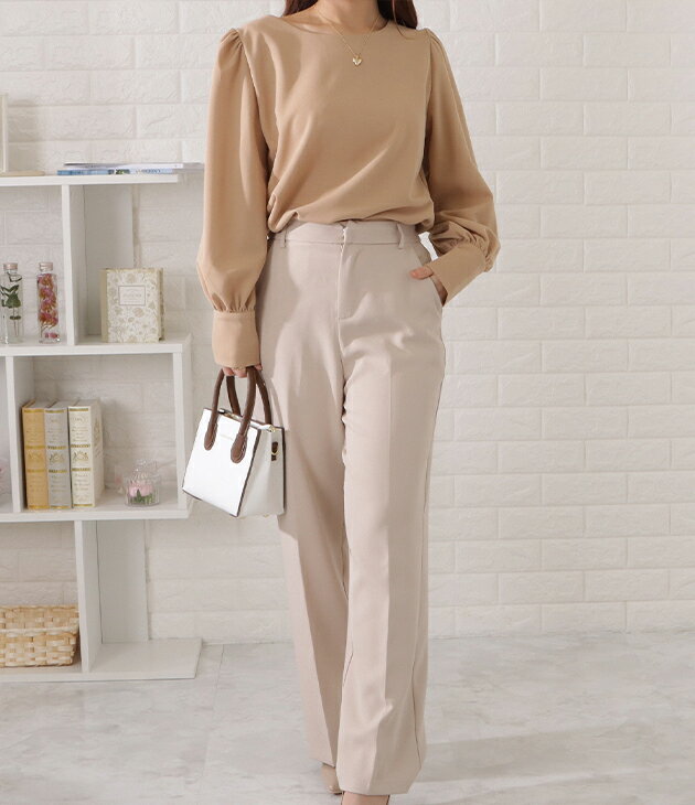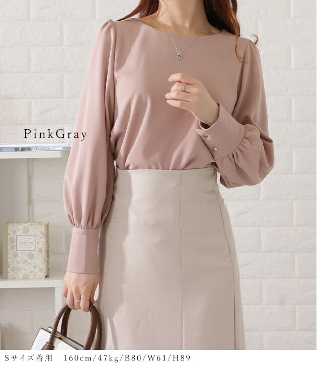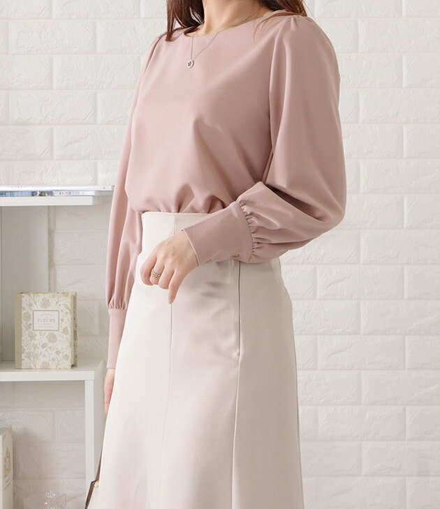 バルーンスリーブとろみタックブラウス レディース トップス プルオーバー ラウンドネック 上品 レディライク 華やか エレガント 女性らしい 落ち感 スムース フェミニン カジュアル オフィス パーティー シンプル 無地 ベーシック