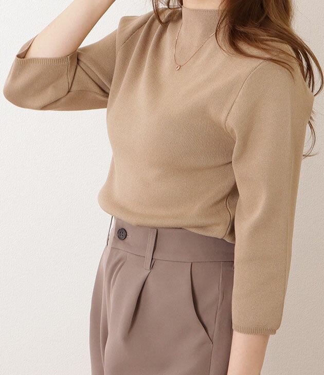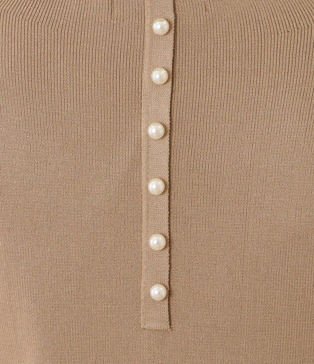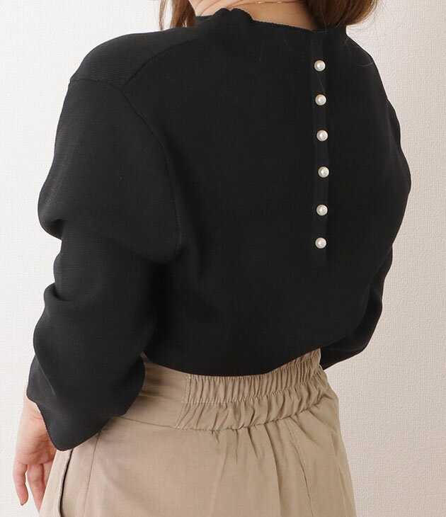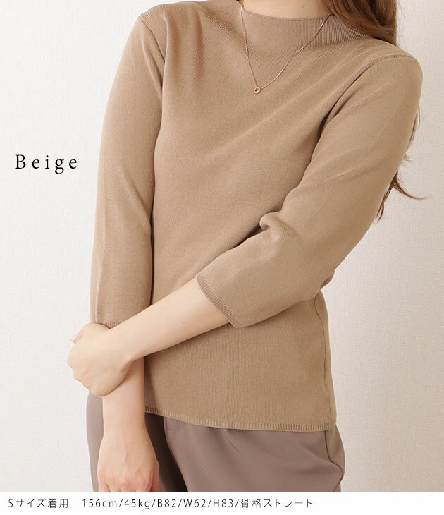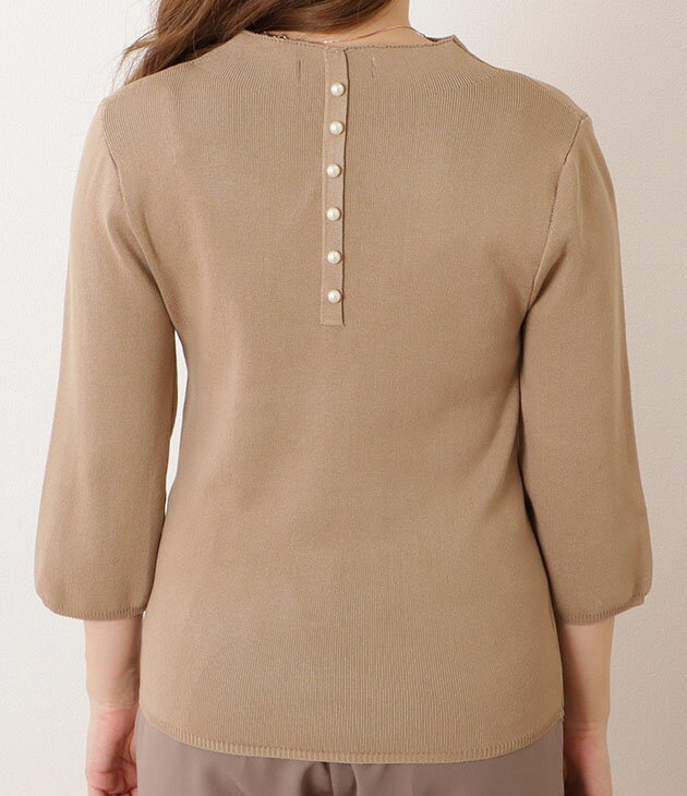 パール付き5分袖ニットプルオーバー 女性 レディース トップス セーター 秋 春 サマーニット 単色 無地 ハーフ袖 半端袖 ベーシック シンプル ミニマル 着回し カジュアル きれいめ エレガント 薄手 フェミニン 華やか 上品