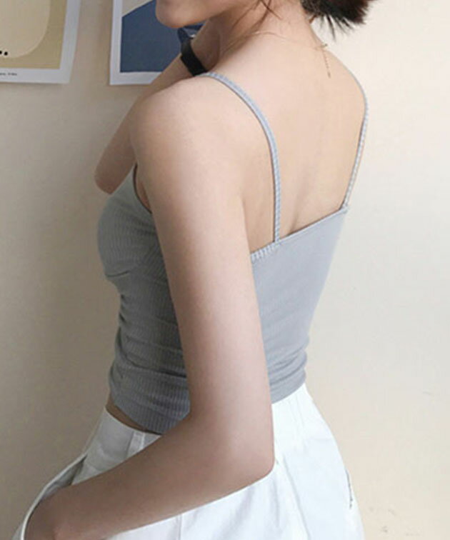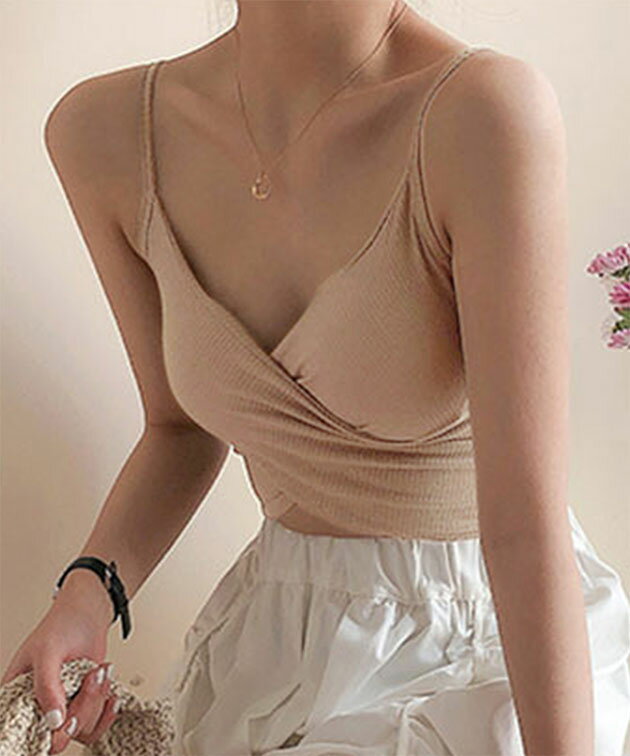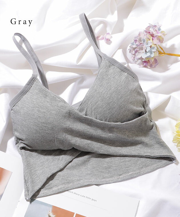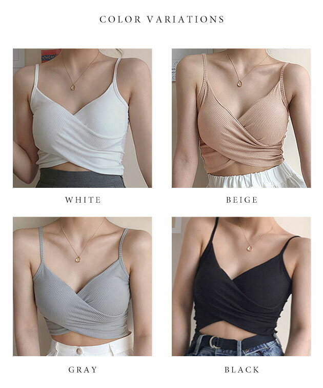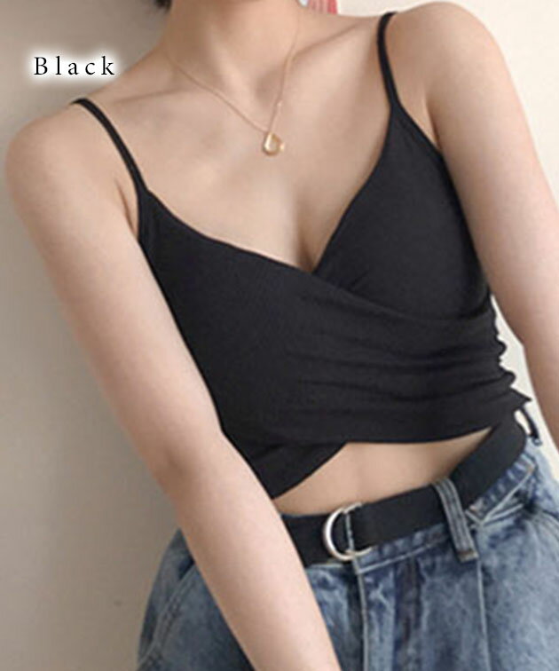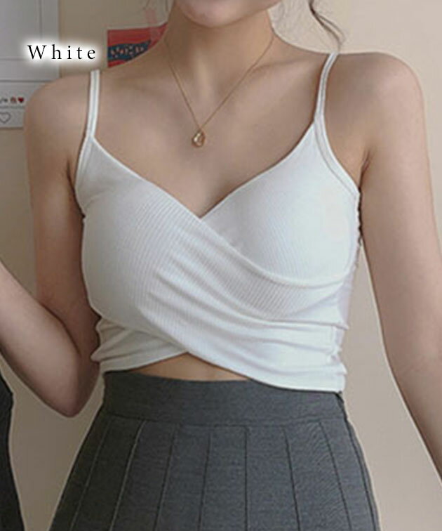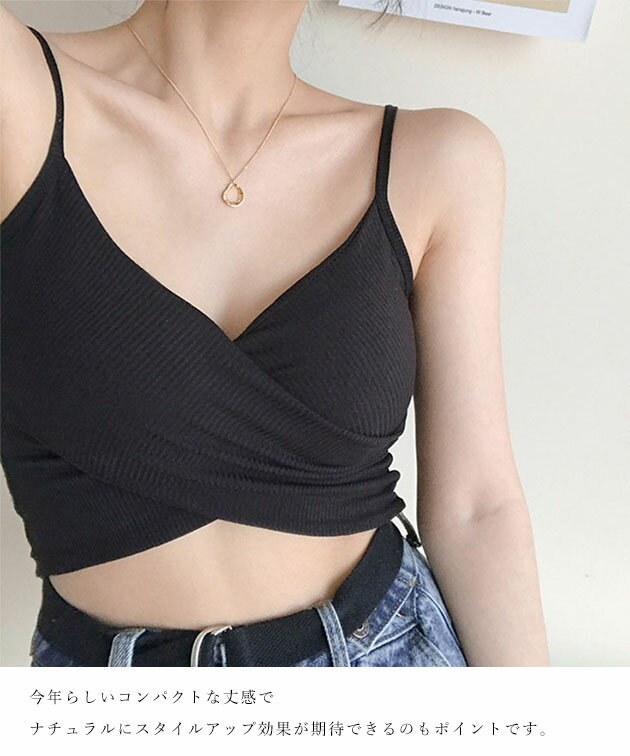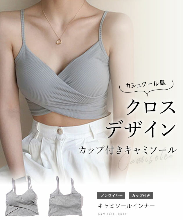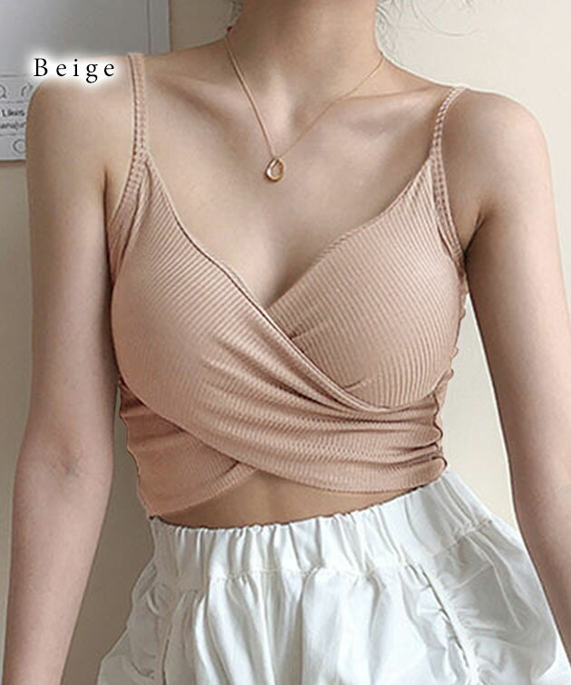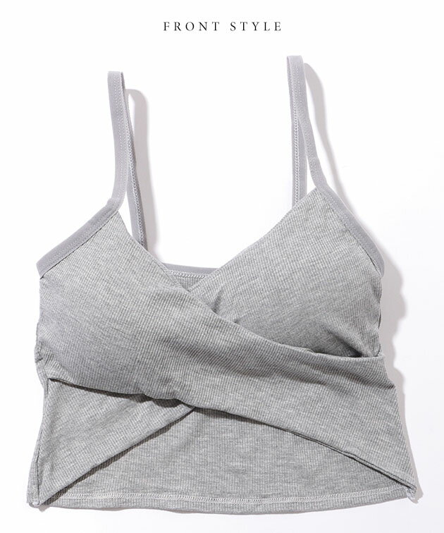 ソリッドカラー クロスデザイン リブ カップ付き キャミソール 女性 レディース 下着 肌着 インナー トップス ブラジャー ハーフトップ 春 夏 コンパクト ショート丈 ヘソだし ヘルシー 肌見せ チラ見え スタイルアップ カジュアル 単色 無地