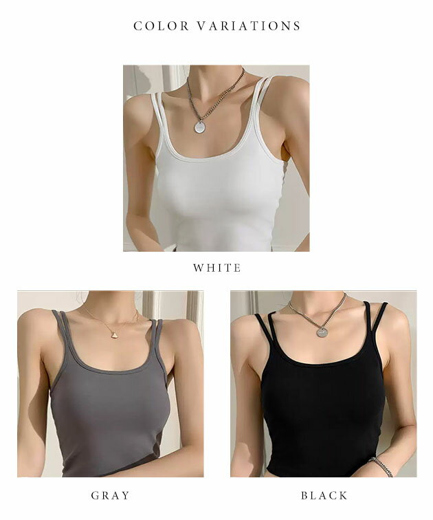 ソリッドカラー ダブル ストラップ カップ付き コンパクト キャミソール 女性 レディース 下着 肌着 インナー トップス ブラジャー ハーフトップ 春 夏 コンパクト ショート丈 ヘルシー 肌見せ スタイルアップ カジュアル 単色 無地 スポブラ
