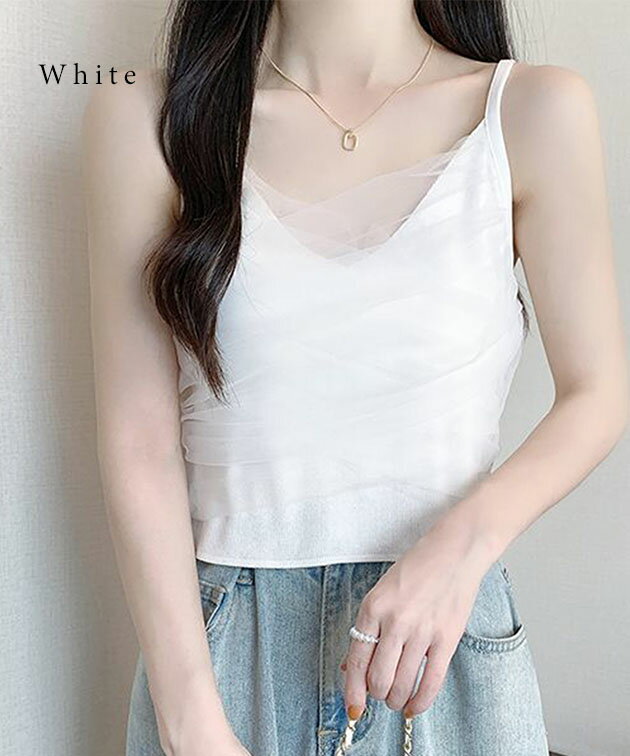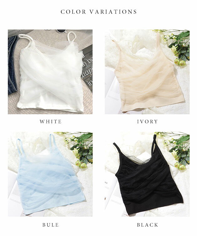 チュール ドッキング カップ付き クロップド キャミソール 女性 レディース 下着 肌着春 夏 秋 冬 インナー ブラジャー ハーフトップ ヘルシー フェミニン 華やか 上品 可愛い 肌見せ 単色 無地 ショート丈 上品 大人 キュート ガーリー