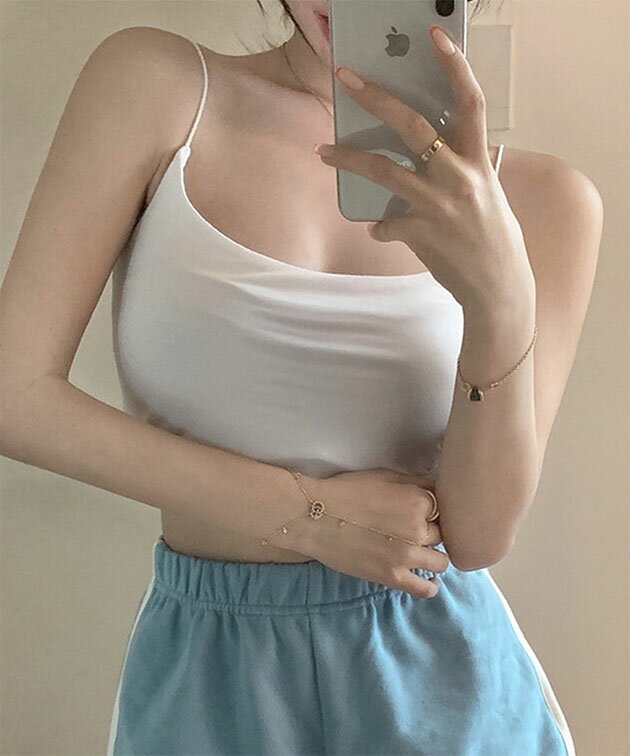 ソリッドカラー ミニマル クロップド カップ付き キャミソール 女性 レディース 下着 肌着 インナー トップス ブラジャー ハーフトップ 春 夏 秋 冬 ヘルシー 肌見せ 単色 無地 シンプル カジュアル ショート丈 ヨガ ピラティス
