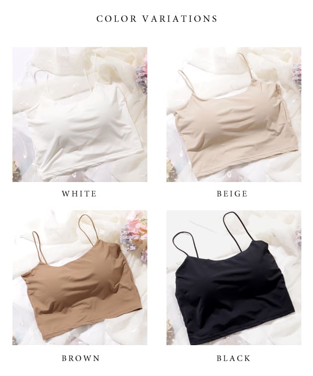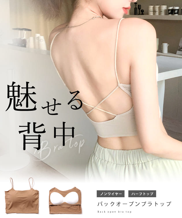 ソリッドカラー バッククロス カップイン クロップド キャミソール 女性 レディース 下着 肌着 インナー トップス ブラジャー ハーフトップ 春 夏 ヘルシー 肌見せ 単色 無地 可愛い ミニマル シンプル カジュアル アクティブ ベアトップ