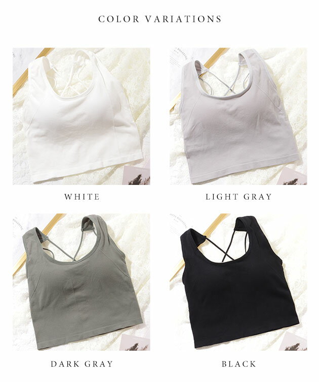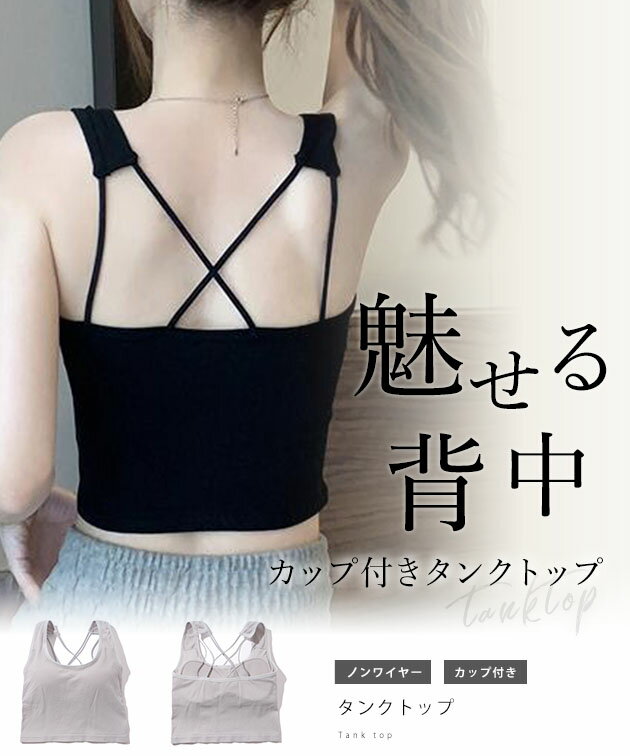 クロスバック ストラップ カップ付き コンパクト タンクトップ 女性 レディース 下着 肌着 インナー ブラジャー ハーフトップ 春 夏 秋 冬 ヘルシー 肌見せ 単色 無地 上品 大人 ミニマル シンプル カジュアル ヨガ ピラティス トレーニング