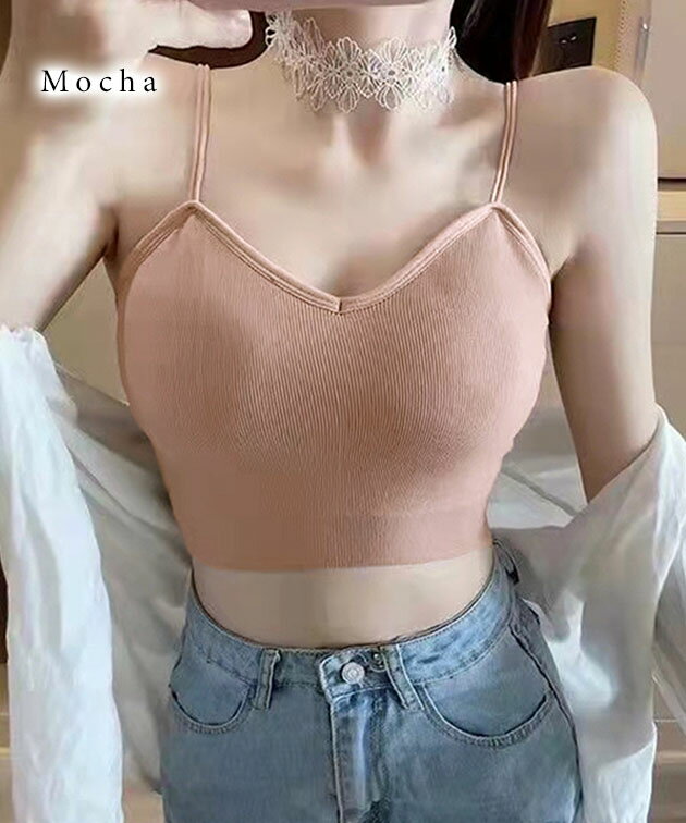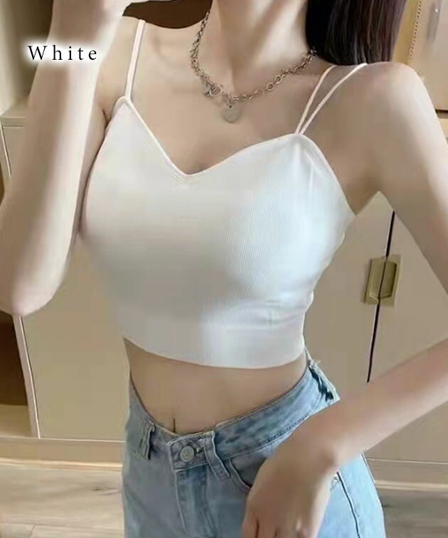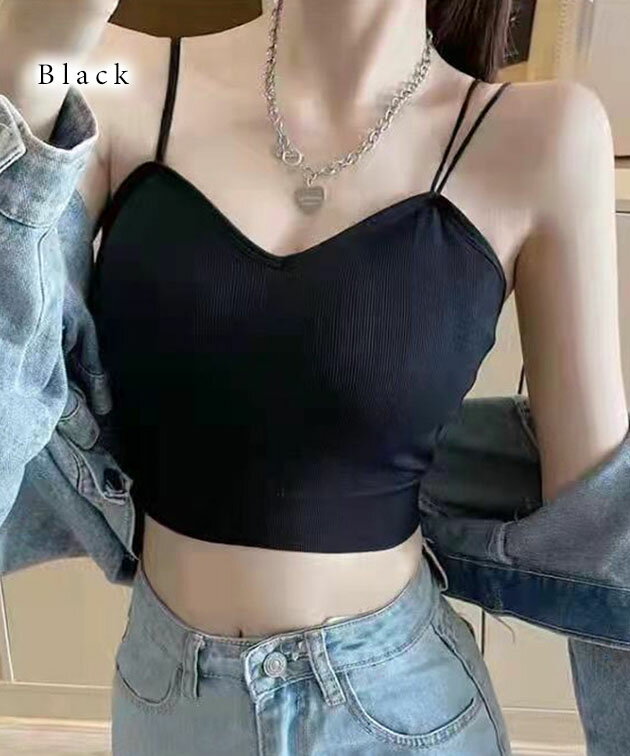 ダブルストラップ リブ ハートネック コンパクト ハーフトップ 女性 レディース 下着 肌着 インナー ブラジャー キャミソール 春 夏 秋 冬 上品 肌見せ シンプル ミニマル 単色 無地 上品 大人 細見え ヘルシー ヨガ ピラティス