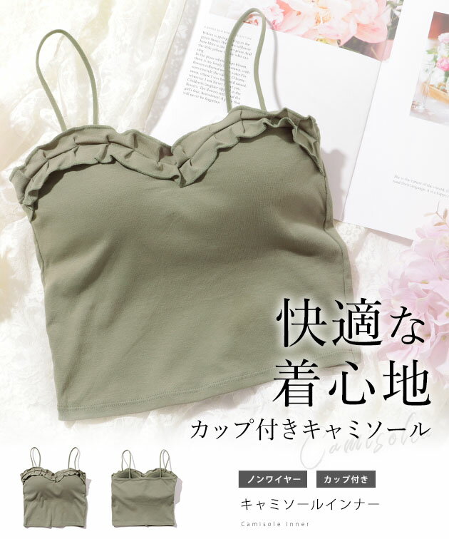 ソリッドカラー フロントフリル クロップド丈 カップ付き キャミソール 女性 レディース 下着 肌着 インナー ブラジャー 春 夏 秋 冬 上品 大人 きれいめ シンプル ミニマル カジュアル 可愛い キュート 単色 無地 シンプル ミニマル カジュアル