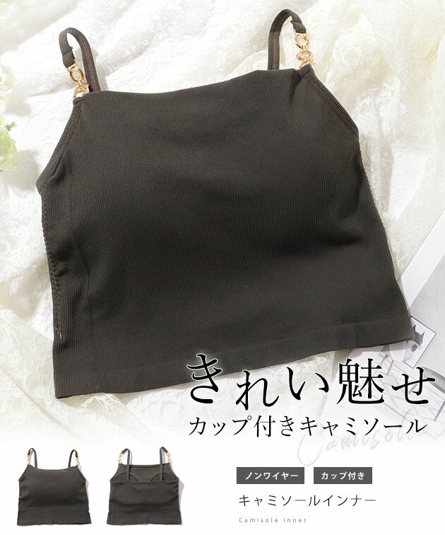 クロップド チェーン ドッキング カップ付き キャミソール 女性 レディース インナー 肌着 下着 春 夏 秋 冬 オールシーズン ブラジャー 単色 無地 シンプル ミニマル 着回し 定番 リブ クロップド ショート 金具 エッジィ 辛口 着痩せ 細見え