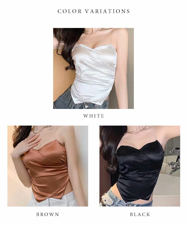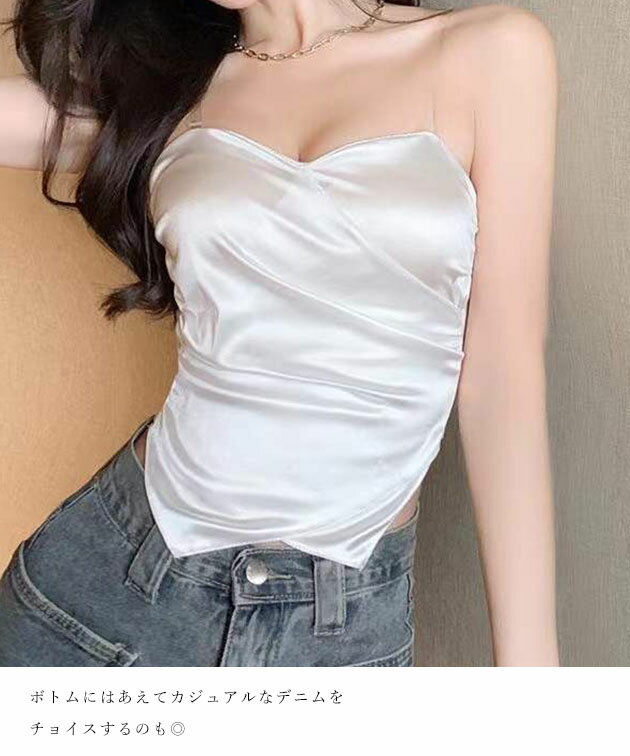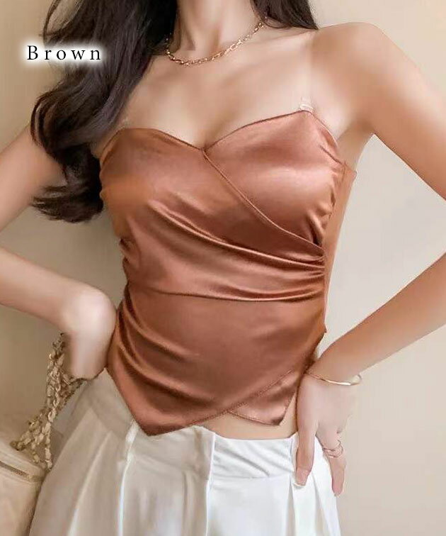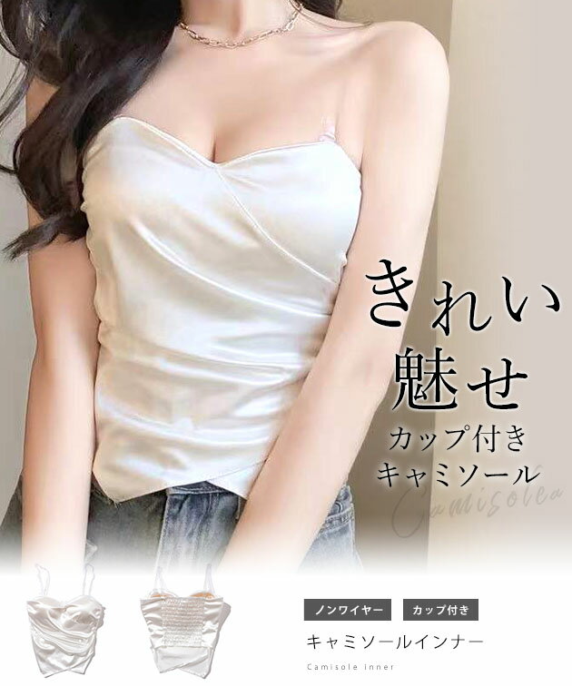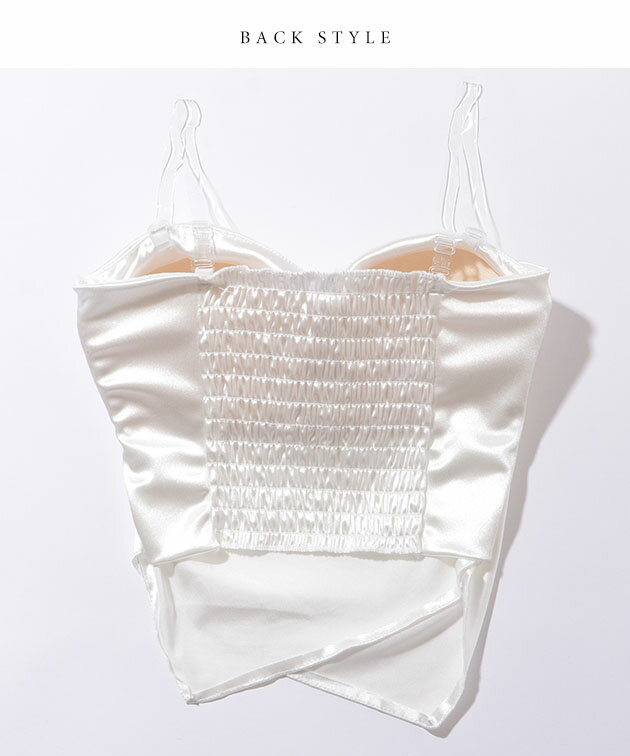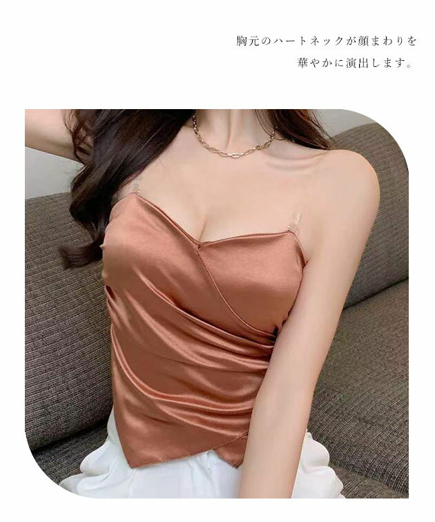 ハートネック バック シャーリング カップイン キャミソール 女性 レディース インナー 肌着 下着 春 夏 ブラジャー トップス 単色 無地 光沢 サテン 上品 エレガント フェミニン ドレッシー 華やか シンプル ショート クロップド コンパクト