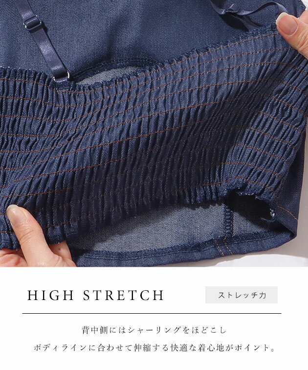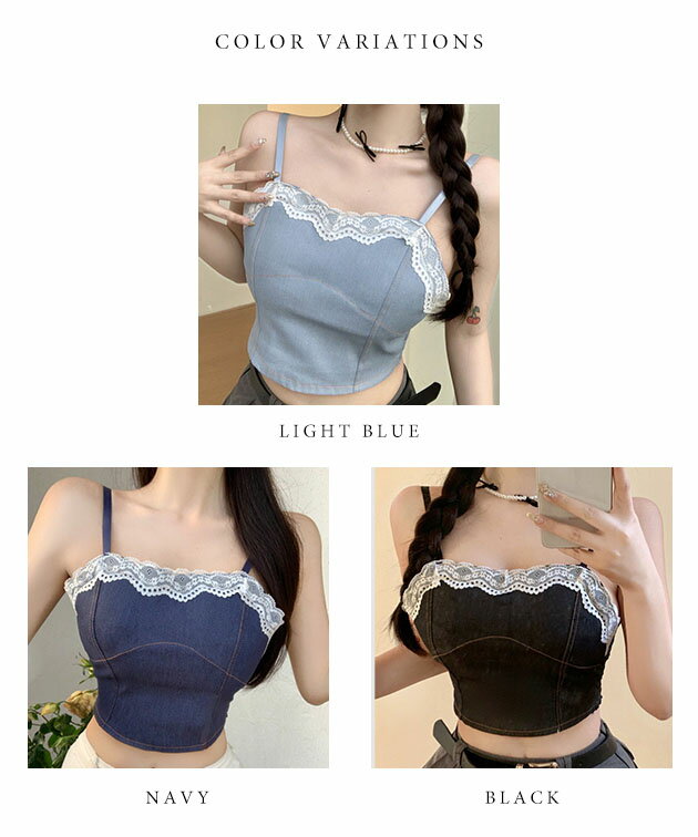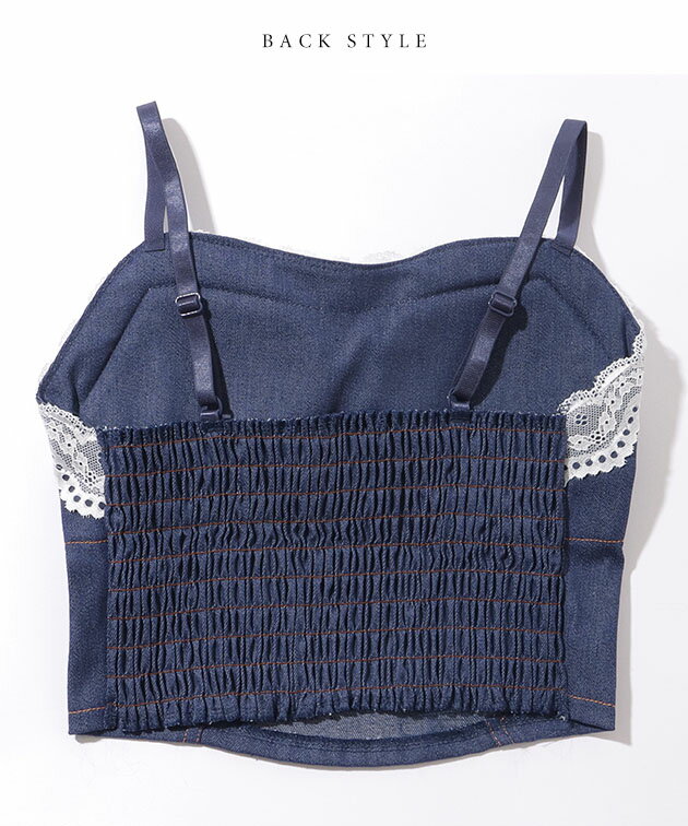 フラワーレース バックシャーリング コンパクト デニム キャミソール 女性 レディース インナー 肌着 下着 春 夏 ハーフトップ 伸縮 単色 無地 シンプル ショート クロップド カジュアル アクティブ デイリー ステッチ 細見え 可愛い キュート